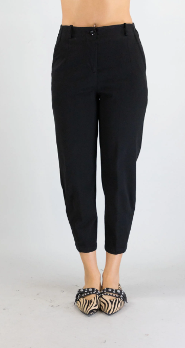 Un classico intramontabile. Il pantalone nero Alessia Santi, a vita alta e con taglio sopra la caviglia, valorizza la silhouette con eleganza e comfort. Perfetto per look da ufficio o outfit serali raffinati.