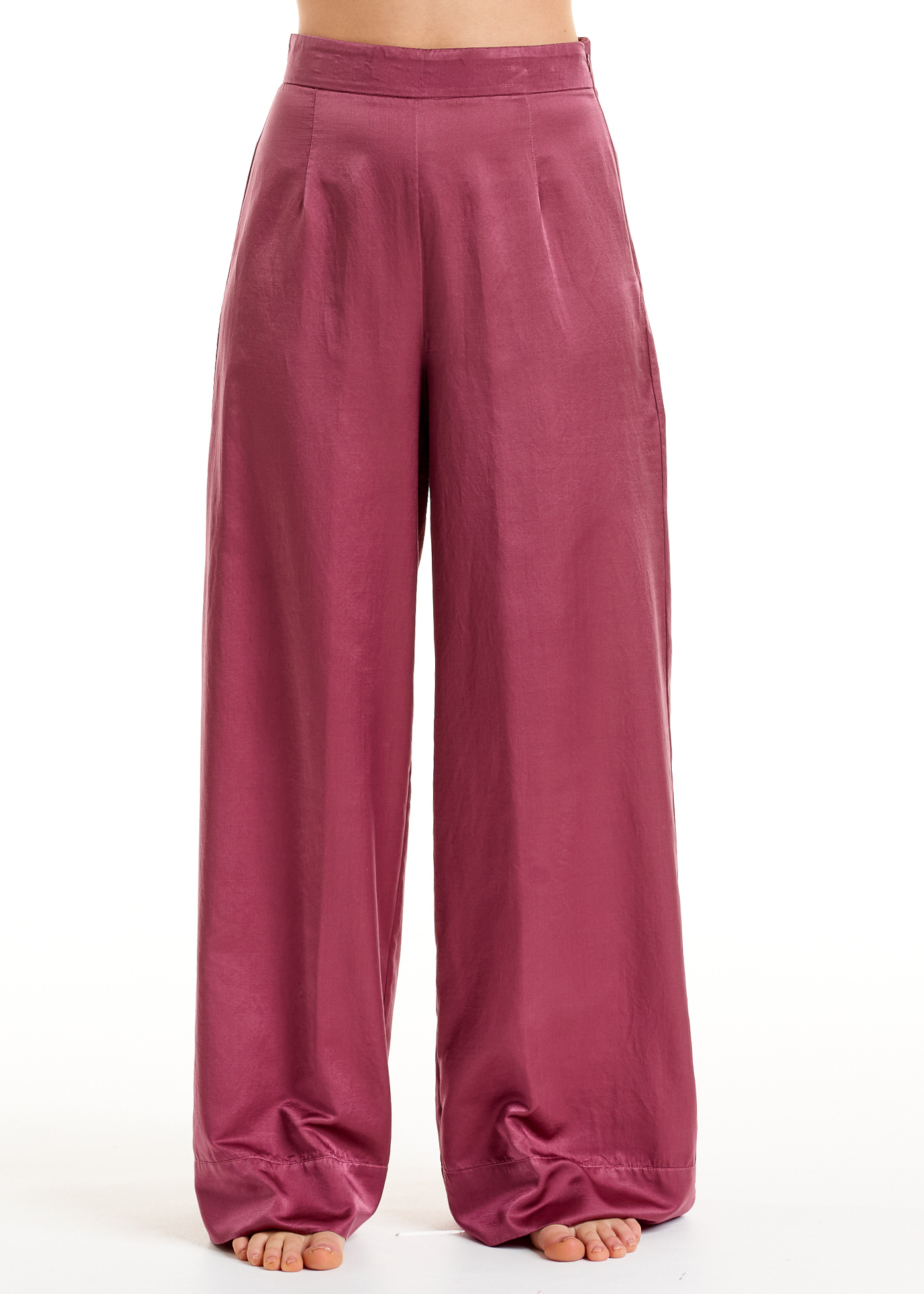 Il modello dalla linea ampia e fluida presenta vita alta e pinces. Per una silhouette slanciata e raffinata che unisce comfort, femminilità ed eleganza contemporanea.