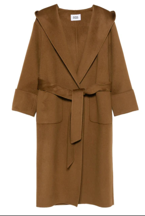 Cappotto con cappuccio e cintura in lana Alpha Studio