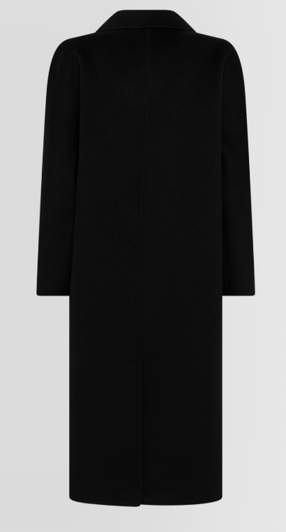 Il design doppiopetto con rever classico e bottoni a contrasto valorizza la silhouette mantenendo una linea pulita e moderna. La lunghezza midi e la struttura ben definita assicurano una vestibilità confortevole e femminile, ideale per affrontare le giornate più fredde con stile.