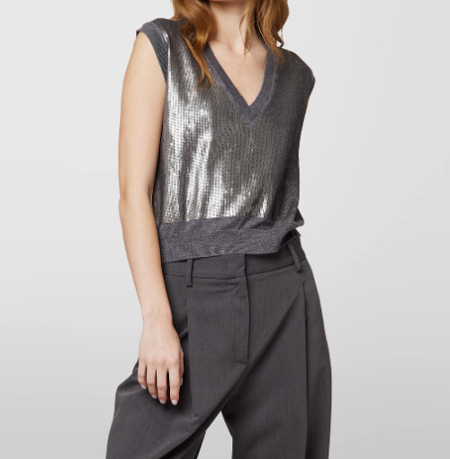Maglia scollo a V con pailettes ricamate.