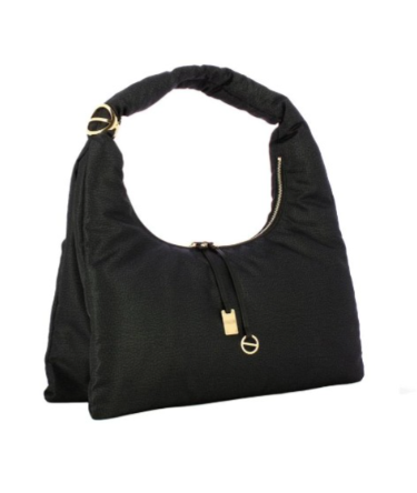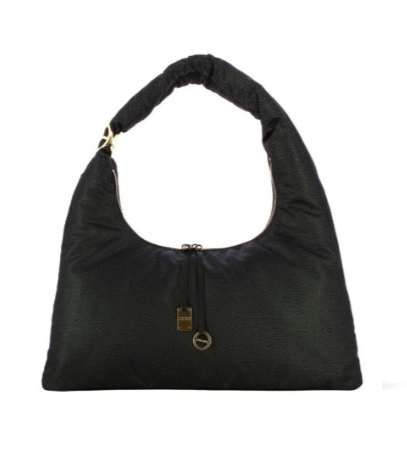 Chiusura esterna con zip metallo e doppio cursore, tirazip in pelle con elementi decorativi a vite e placchetta logati