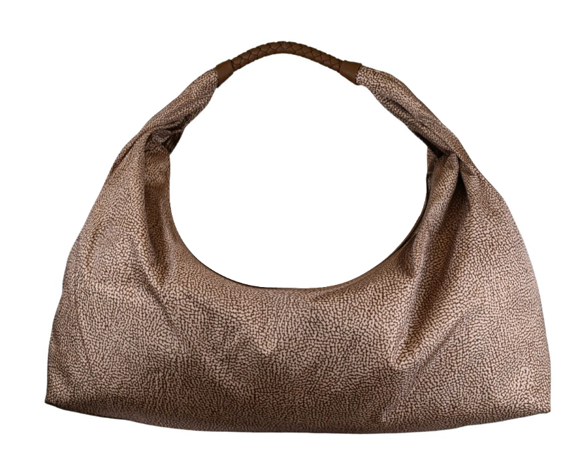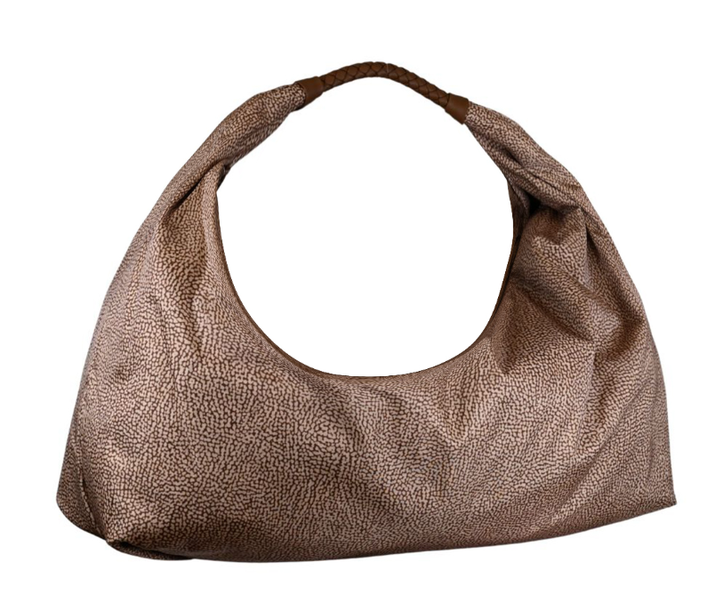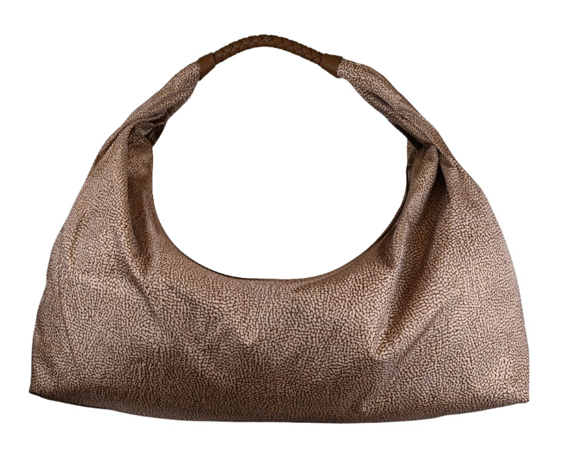 La borsa hobo di Borbonese ha una silhouette sinuosa e la scelta di materiali morbidi contribuisce a rendere questo accessorio un must have di stagione.