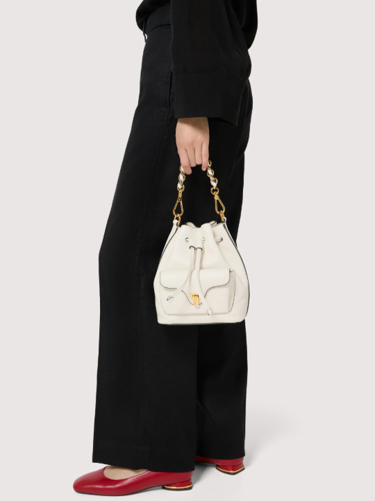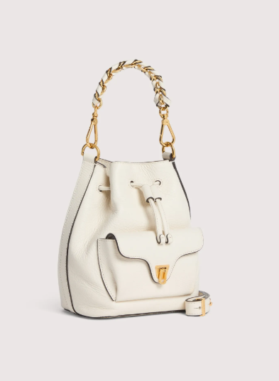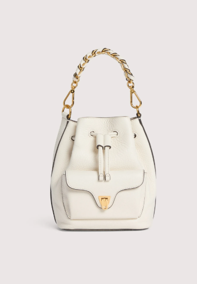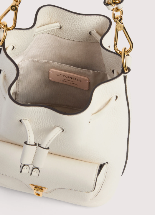 Coccinelle Beat è una tra le icone del brand: la distintiva chiusura a battente con il plettro è il simbolo didentità Coccinelle, che per questa collezione si reinventa con funzionalità contemporanee ed eleganti.Il mini secchiello è impreziosito dal manico in pelle e catena, un mix perfetto tra struttura e morbidezza, tra praticità e design contemporaneo. Questo modello è realizzato in pelle lavorata tramite specifici macchinari e poi bottalata al fine di mantenerne la morbidezza. È una pelle molto resistente che si presta a una facile pulizia, ideale per un uso quotidiano.