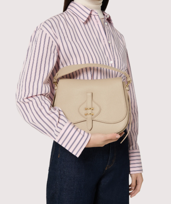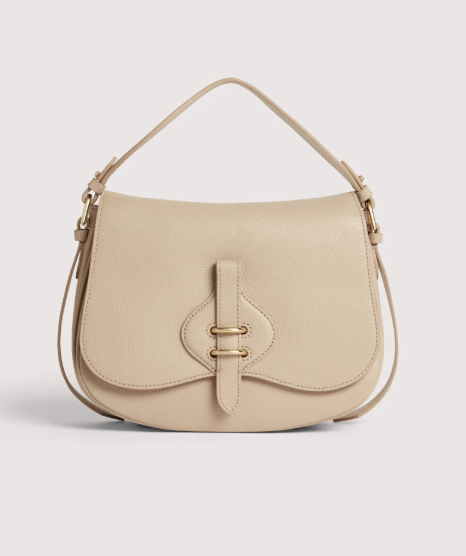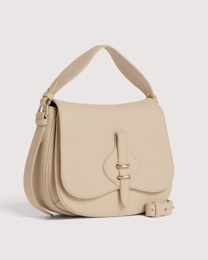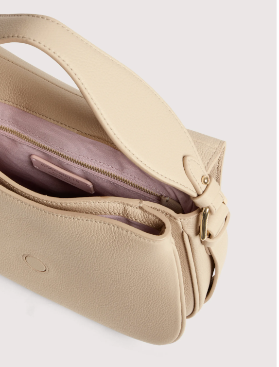 La linea Coccinelle Mavery esprime eleganza e armonia attraverso forme curve e linee sinuose. La borsa a mano si distingue per un raffinato dettaglio frontale in pelle che richiama il mondo della selleria, arricchito da due punti luce che ne esaltano la preziosità. I laccetti laterali Coccinelle aggiungono un tocco di femminilità, enfatizzando il movimento naturale della silhouette. Questo modello è realizzato con pelle lavorata tramite specifici macchinari e poi bottalata al fine di mantenerne la morbidezza. È una pelle molto resistente che si presta a una facile pulizia, ideale per un uso quotidiano.