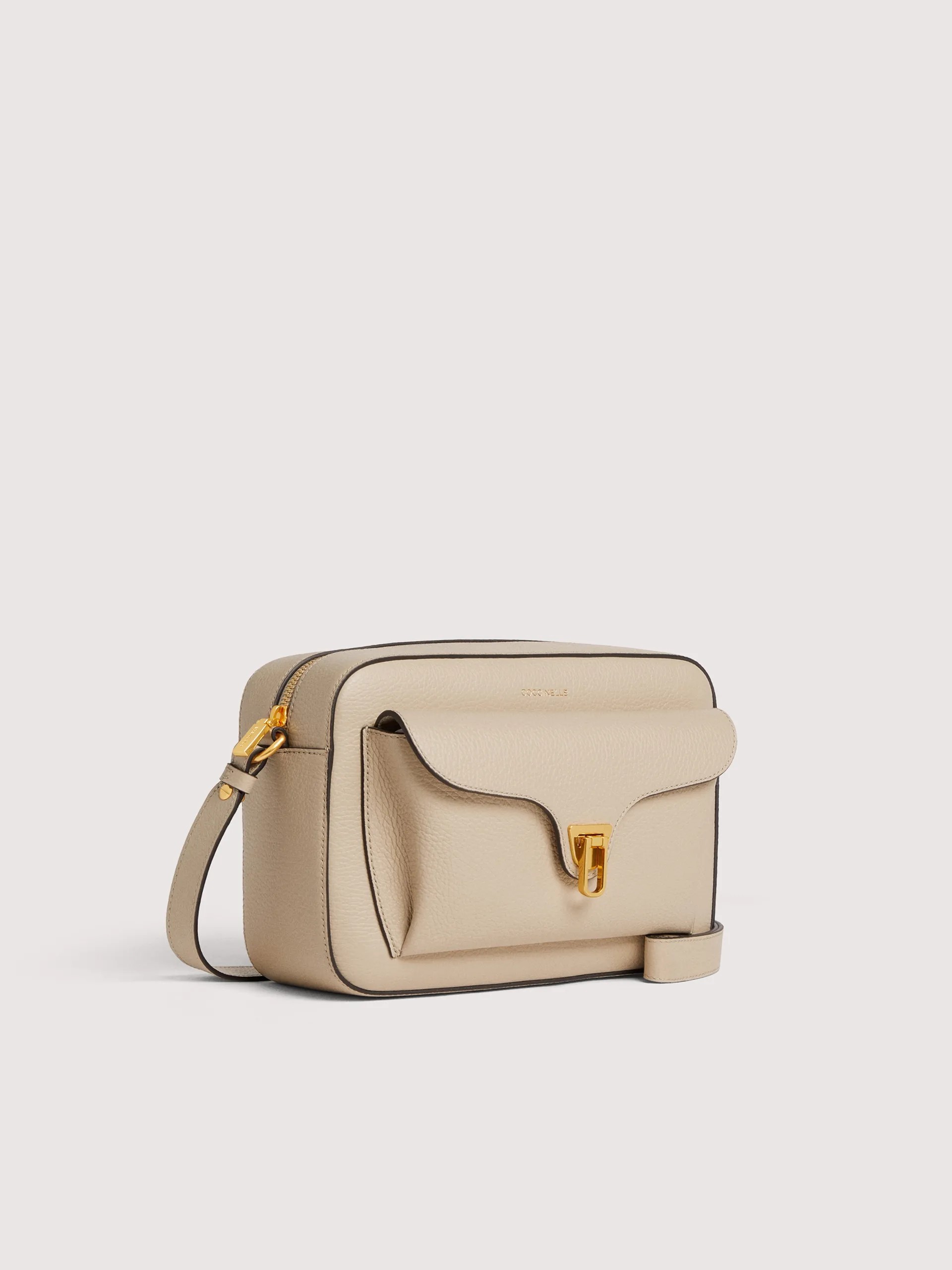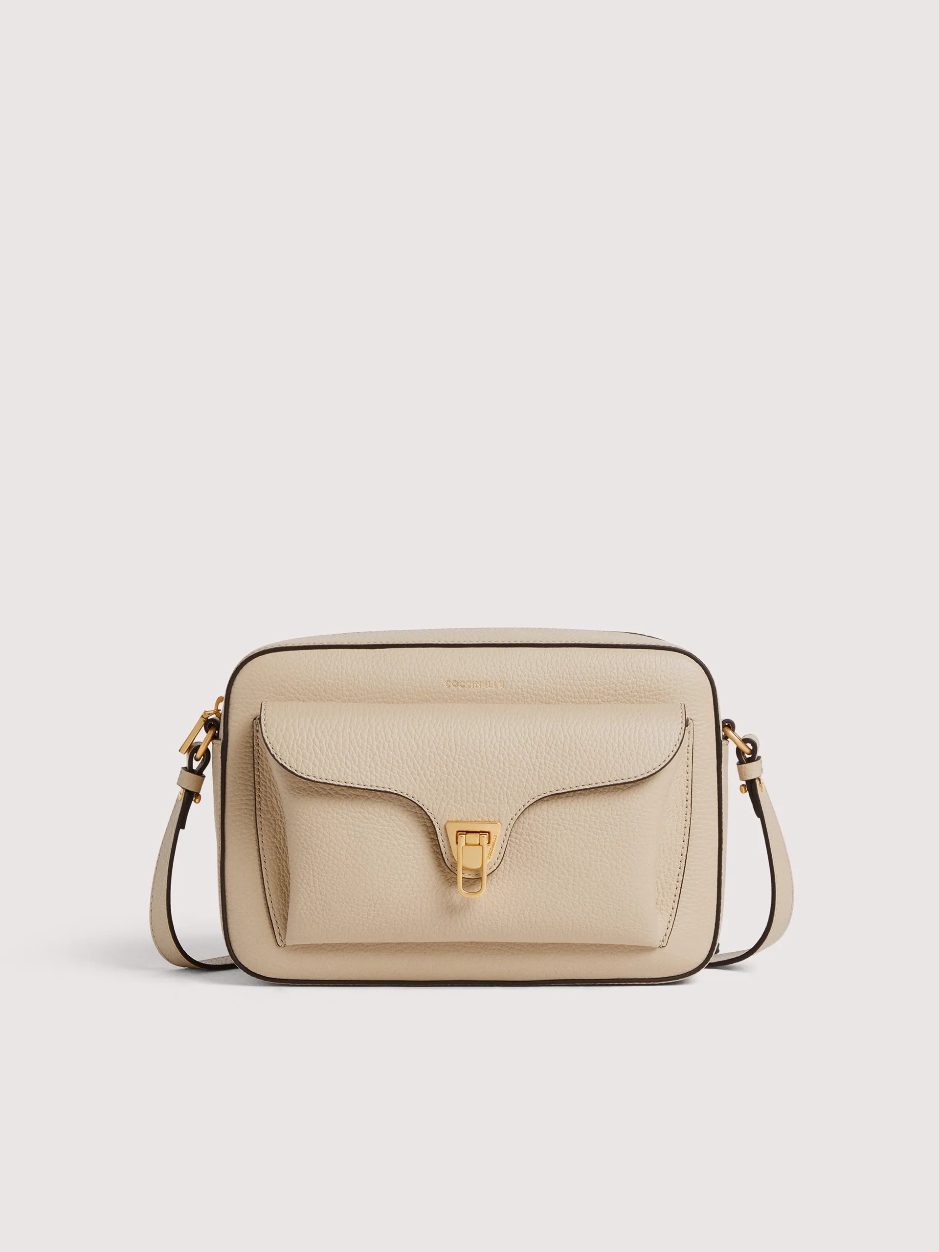Questa camera bag della linea Beat è facile da abbinare ad ogni tipo di outfit. E' arricchita da una tasca esterna caratterizzata dall'iconica chiusura in metallo a forma di plettro, ideale per tenere sempre al sicuro i propri oggetti personali. Questo modello è realizzato in pelle lavorata tramite specifici macchinari e poi bottalata al fine di mantenerne la morbidezza. È una pelle molto resistente che si presta a una facile pulizia, ideale per un uso quotidiano.