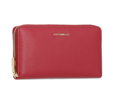 Questo portafoglio con zip della linea Metallic dalle ampie dimensioni è impreziosito dal logo Coccinelle in metallo. Il suo spazio è organizzato al meglio per riporvi il necessario con ordine e cura.