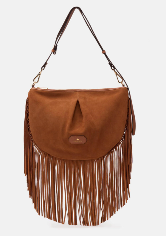 La Emma Maxi Pouch Folk è una borsa dal design morbido e seducente, che cattura lessenza delleclettismo urbano con un mix di materiali scamosciati morbidi dalleffetto vissuto e dettagli di frange. Perfetta da indossare sottobraccio o con la tracolla regolabile e rimovibile, è ideale per aperitivi, pranzi di lavoro o momenti in cui non passare inosservate. Il logo stampato a fuoco, la chiusura con zip in metallo color oro e i dettagli interni funzionali riflettono stile, energia e dinamismo, rendendo questa borsa un accessorio distintivo e versatile.