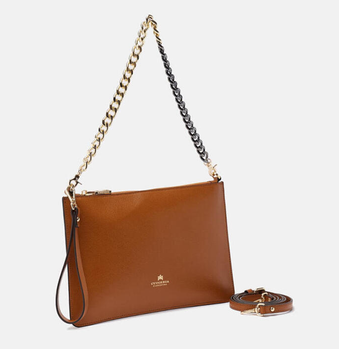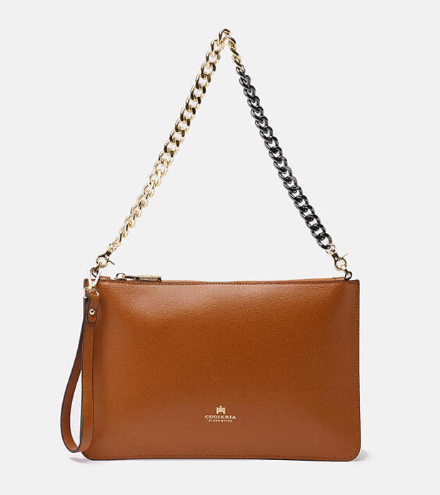 Una borsa dal design lineare ed elegante che permette di portare con sé il necessario nelle serate piene di impegni. Il pellame dà un tocco grintoso e alla moda; comodissima da indossare a spalla con la leziosa catena, può anche trasformarsi in pochette durante gli aperitivi con le amiche portandola a mano. Perfetta per la donna che non vuole passare inosservata.
