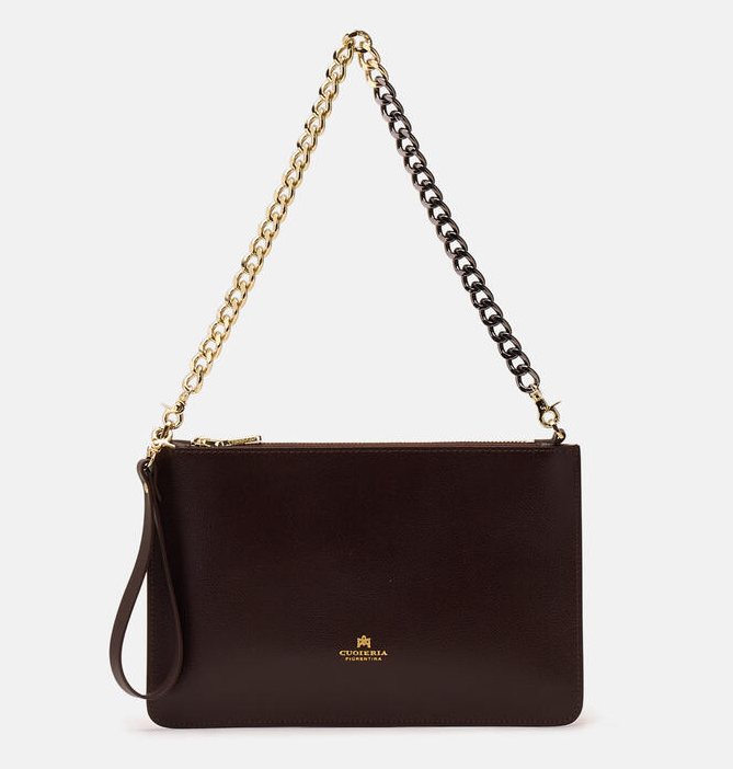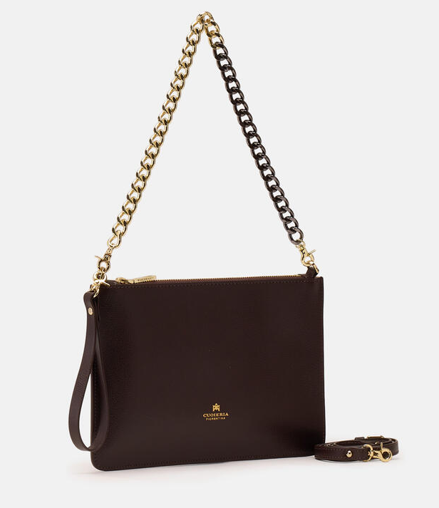 Una borsa dal design lineare ed elegante che permette di portare con sé il necessario nelle serate piene di impegni. Il pellame dà un tocco grintoso e alla moda; comodissima da indossare a spalla con la leziosa catena, può anche trasformarsi in pochette durante gli aperitivi con le amiche portandola a mano. Perfetta per la donna che non vuole passare inosservata.
