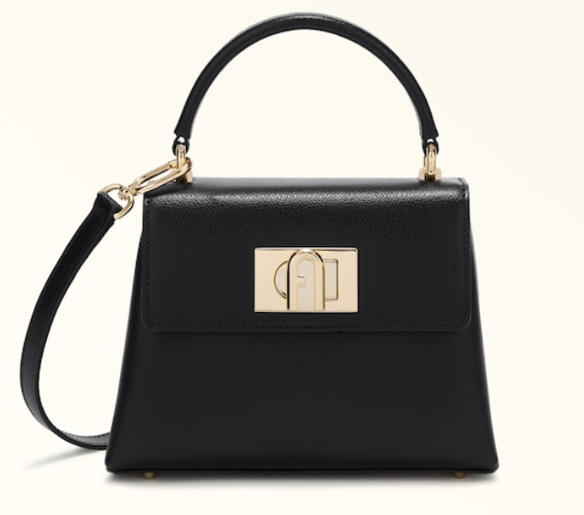 Perfetta per contenere l'essenziale: Furla 1927 è una mini bag da portare a mano. In elegante pelle dalla leggera texture granata, è decorata dalla distintiva chiusura a girello con linguetta e l'iconico logo Arco Furla.