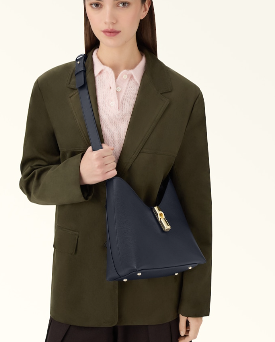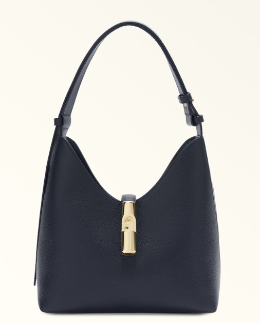 La hobo bag Furla Goccia si distingue per la silhouette morbida e destrutturata realizzata in pelle di vitello stampato traforato. La borsa è arricchita da una fascetta abbinata al manico regolabile in pelle a contrasto. Il nuovo hardware cilindrico con pesetto e logo Arco Furla chiude elegantemente il modello.