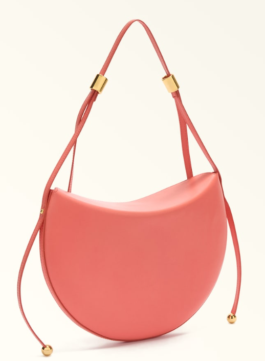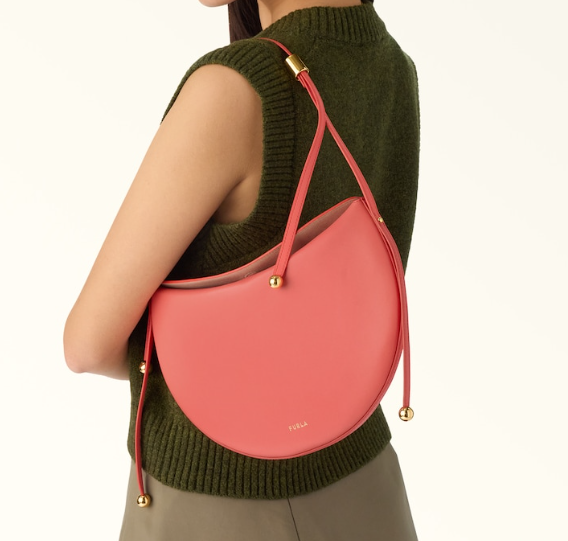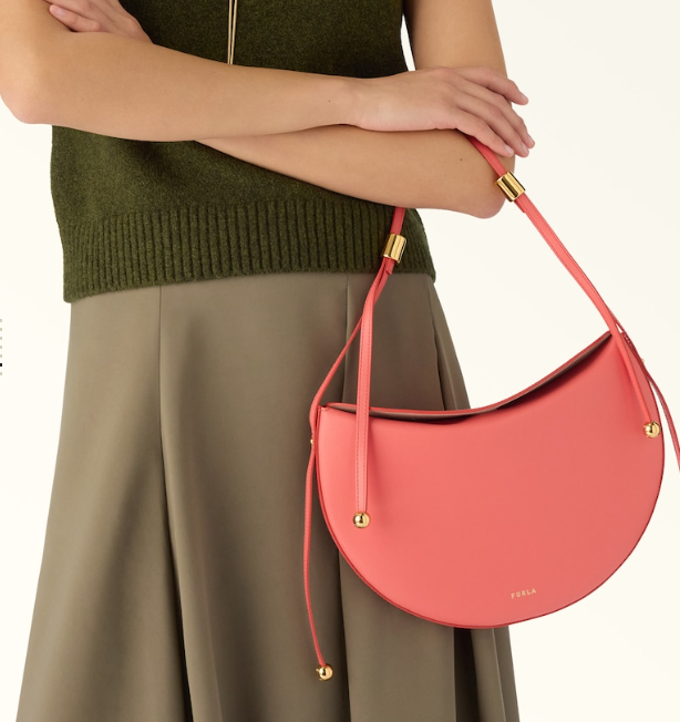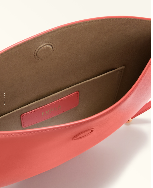 Silhouette contemporanea dalla tipica forma a sella per la shoulder bag Furla Moonstone. Il design in pelle di vitello viene esaltato dalle linee morbide e arrotondate. La tracolla fissa e regolabile consente diverse opzioni di styling. L'hardware cilindrici e i due elementi a Sfera aggiungono un tocco elegante e distintivo al modello.