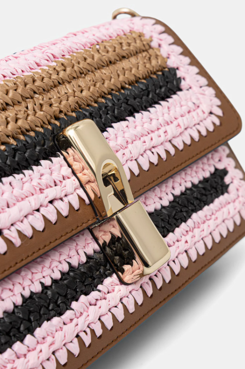 La borsa a tracolla Furla è un accessorio elegante e funzionale, perfetto per custodire gli oggetti indispensabili offrendo al contempo praticità d'uso. Questo modello, realizzato con una combinazione di pelle naturale e tessuto intrecciato, si distingue per la sua struttura rigida e la pratica chiusura magnetica. Si adatta perfettamente a look casual, urbani e boho, rendendola la scelta ideale per incontri con amici o uscite nel fine settimana.