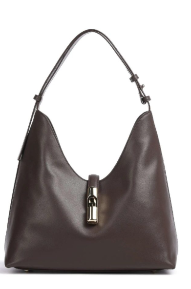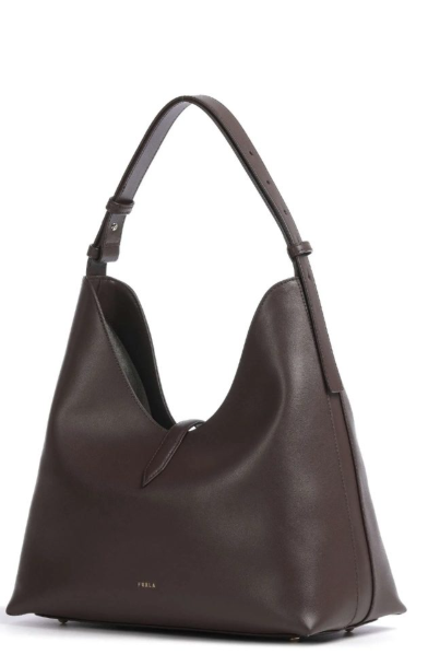 La hobo bag Furla Goccia si distingue per la silhouette morbida e destrutturata realizzata in pelle liscia dalla mano setosa e ricca. La borsa è arricchita da una fascetta abbinata impreziosita dal nuovo hardware cilindrico con pesetto decorato dalliconico logo Arco Furla che tiene chiuso il modello. Linterno aperto è capiente e spazioso per contenere i propri essentials.
