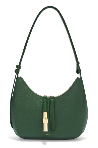 Furla Goccia è la shoulder bag dalle linee morbide e sinuose. In un gioco di contrasti materici tra pelle martellata e dettagli in pelle liscia, si caratterizza per la forma stondata e una silhouette compatta ma spaziosa. La chiusura con doppio cursore a zip è impreziosita dal particolare hardware cilindrico in finitura lucida con logo Arco su uno dei due puller in pelle.