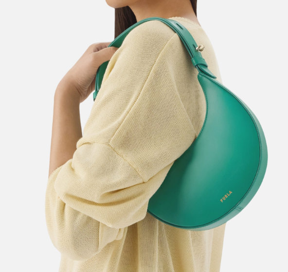 Mini formato e spazio compatto ideale per avere con sé tutti gli essentials. Furla Delizia è un condensato di pura eleganza. La borsa con struttura rigida a mezzaluna è realizzata in morbida pelle dal tocco setoso e liscio. Comoda da indossare a spalla è perfetta anche per il trasporto a mano grazie alla tracolla regolabile.