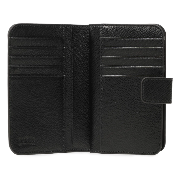 Il portafoglio Furla Camelia si caratterizza per il suo design minimale con apertura a libro. Realizzato in pregiata pelle liscia definita da angoli smussati e linee sinuose, è un accessorio essenziale da custodire in ogni borsa. Il formato compatto è perfettamente studiato per organizzare al meglio banconote, carte e documenti.