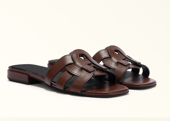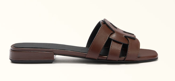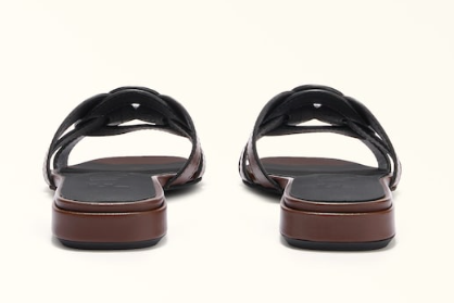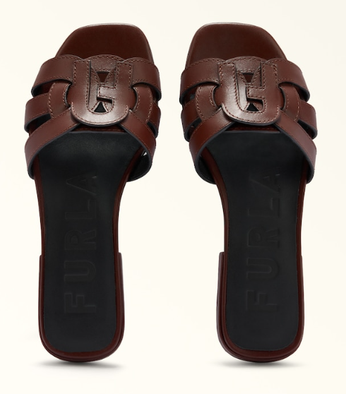La morbida pelle di vitello liscia rende il sandalo Furla Summer una calzatura elegante e sofisticata. La fascia larga presenta una lavorazione cut out bicolore con una reinterpretazione moderna dell'iconico logo Arco. Un modello comodo ma allo stesso tempo raffinato con cui completare il proprio look.