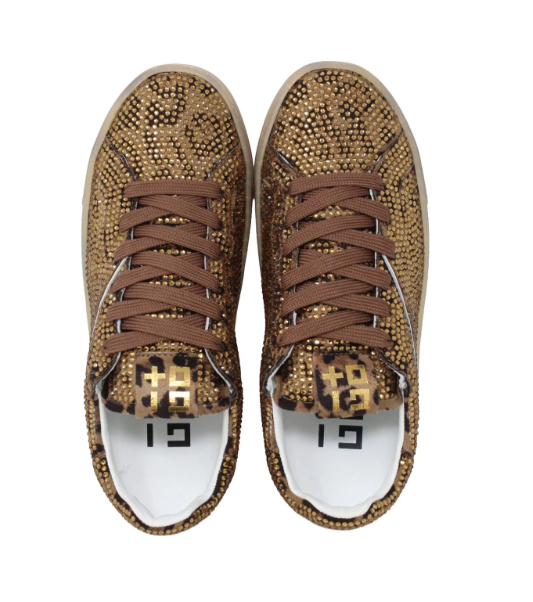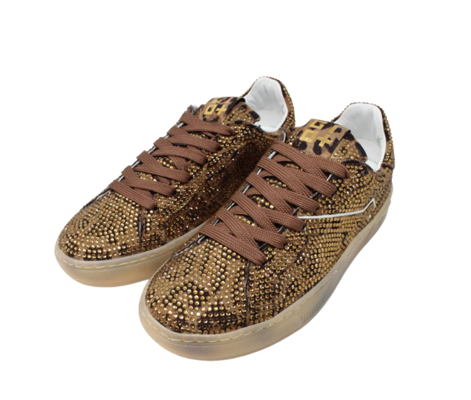 Sneakers da donna dal design glamour e moderno, realizzata con tomaia interamente ricoperta di strass effetto oro che dona luce e carattere ad ogni passo.