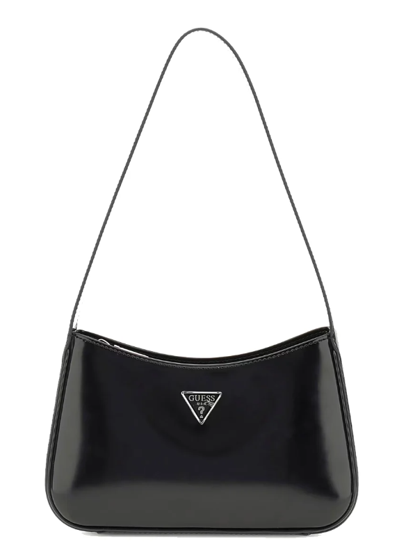 Sottospalla Arnela Guess, elegante e versatile borsa a spalla realizzata in similpelle effetto vernice, con manico singolo, logo frontale in metallo smaltato e design anni Novanta. Comoda chiusura con cerniera e interno foderato.