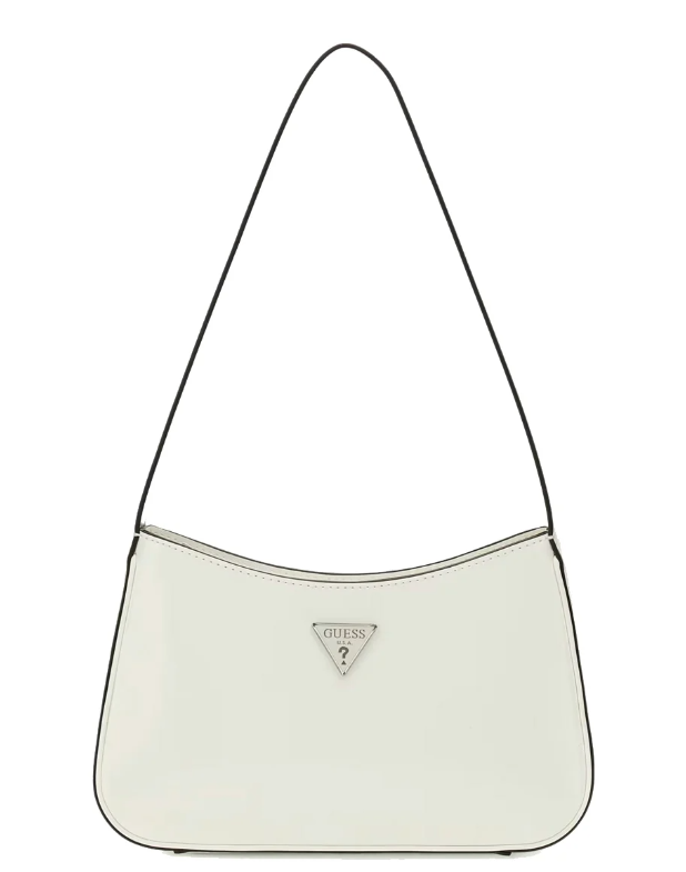 Sottospalla Arnela Guess, elegante e versatile borsa a spalla realizzata in similpelle effetto vernice, con manico singolo, logo frontale in metallo smaltato e design anni Novanta. Comoda chiusura con cerniera e interno foderato.