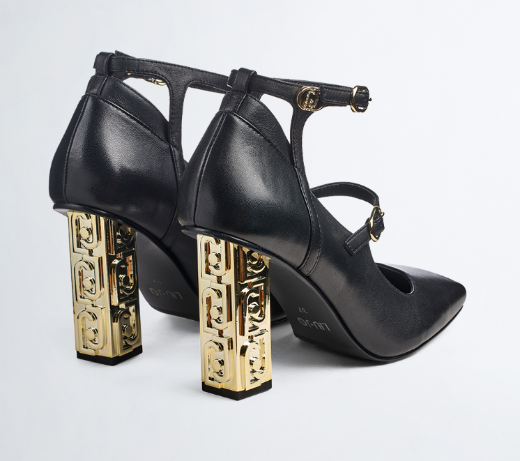 Tacco largo a colonna con logo all over