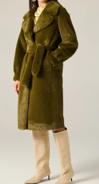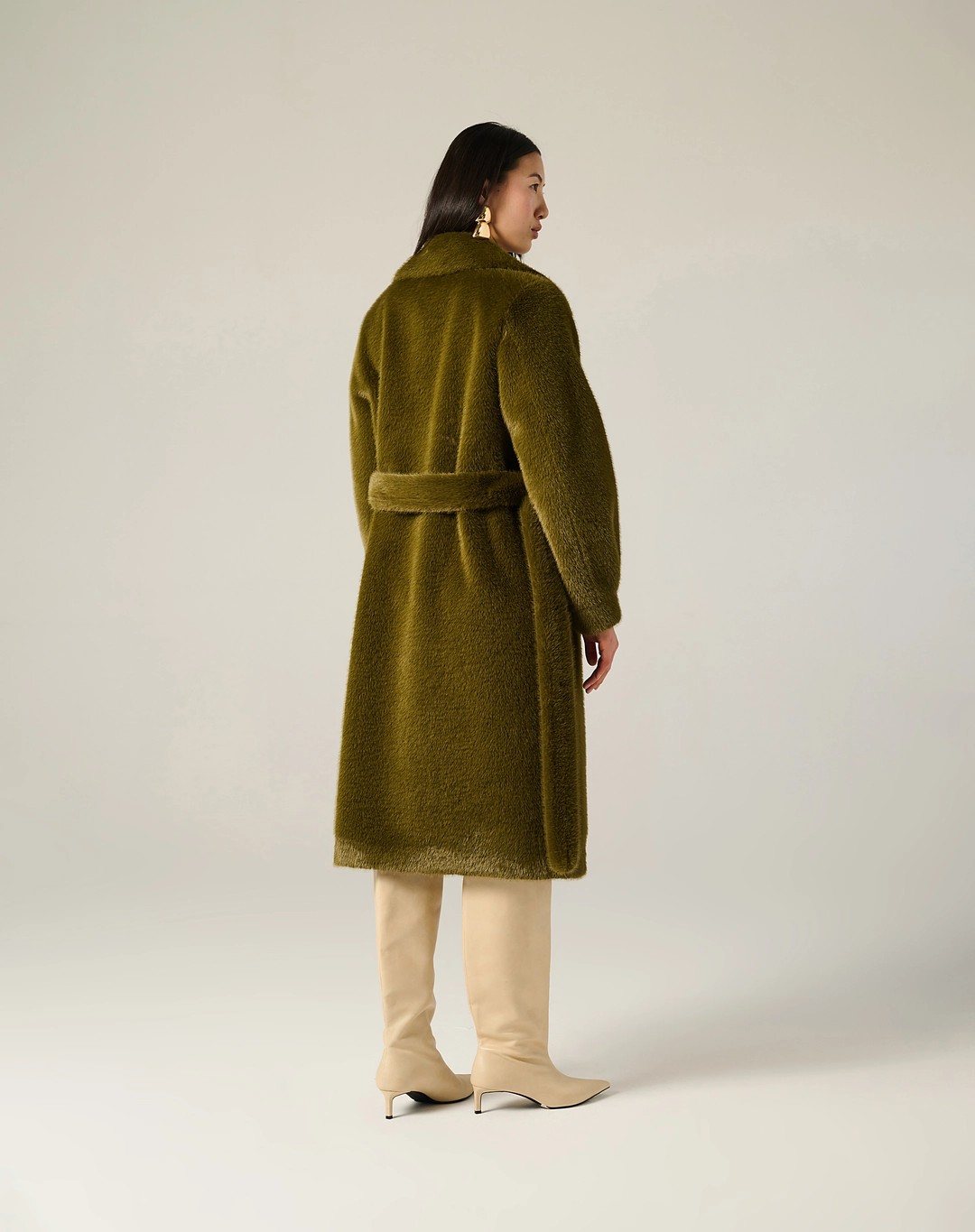 Un abbraccio avvolgente di eleganza. Questo cappotto lungo Manila Grace in eco-pelliccia è un capo statement che unisce comfort e glamour con estrema disinvoltura. La texture morbida, il taglio dritto e il colore verde oliva intenso lo rendono il protagonista assoluto di ogni look invernale. Perfetto per chi ama distinguersi con stile.