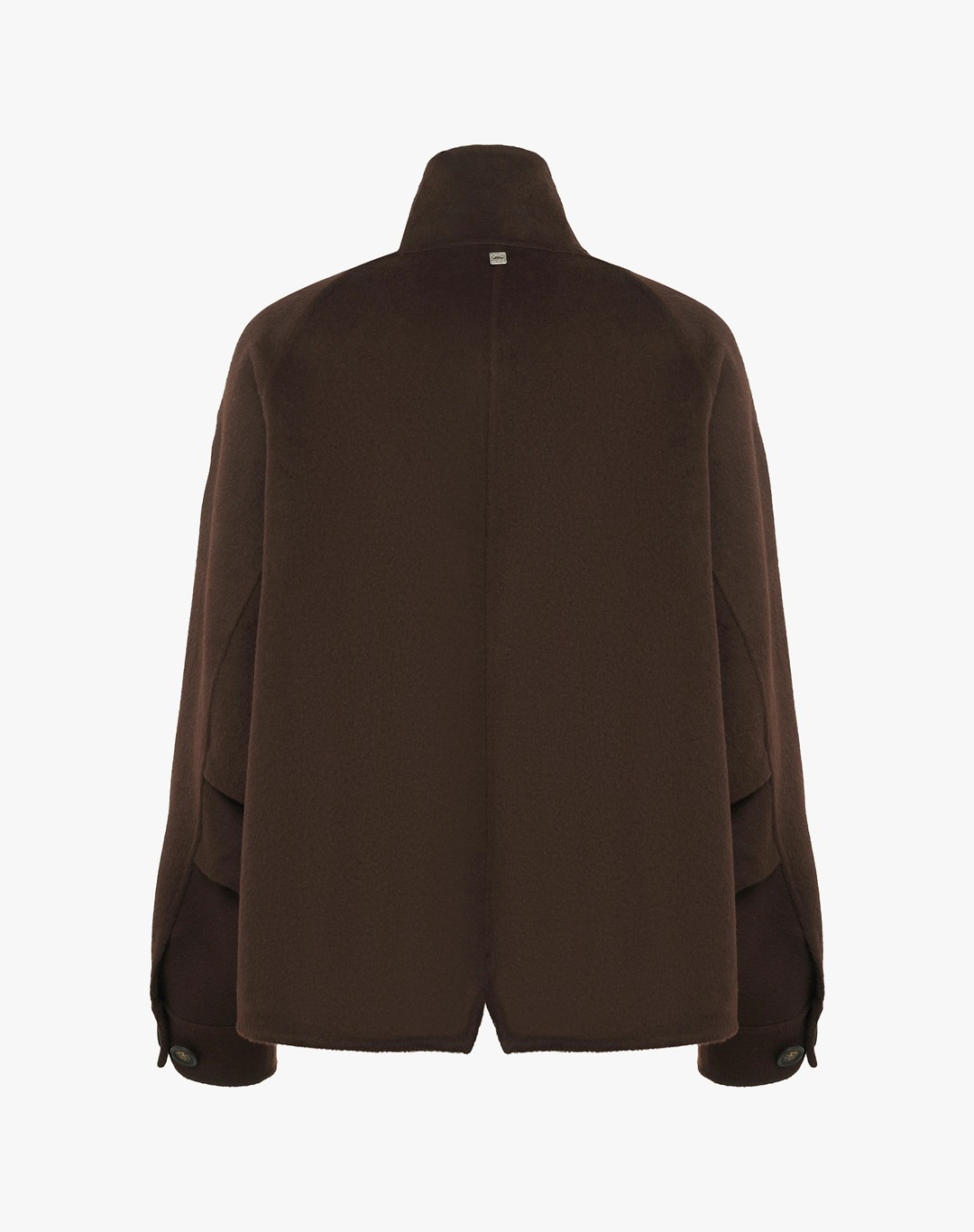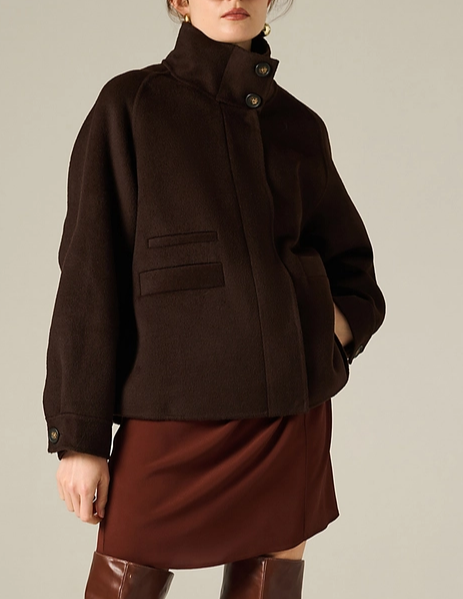 Il cappotto corto Manila Grace in caldo marrone è unode alla semplicità raffinata. Realizzato in un blend di lana dallaspetto morbido e strutturato, è lalleato ideale per la stagione fredda. Il design minimal è impreziosito dal collo alto con bottoni a vista che protegge dal vento con stile, mentre la linea pulita valorizza ogni silhouette.