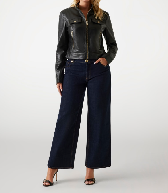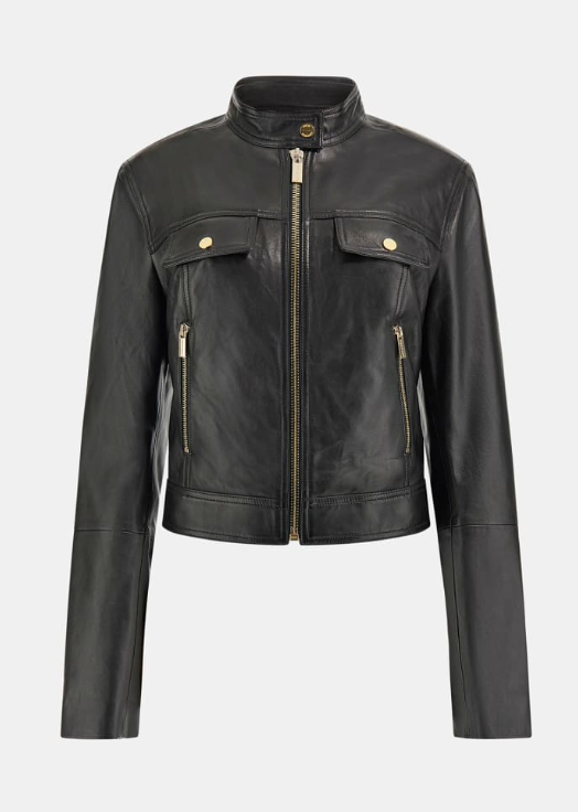 Giacca biker a maniche lunghe in pelle.