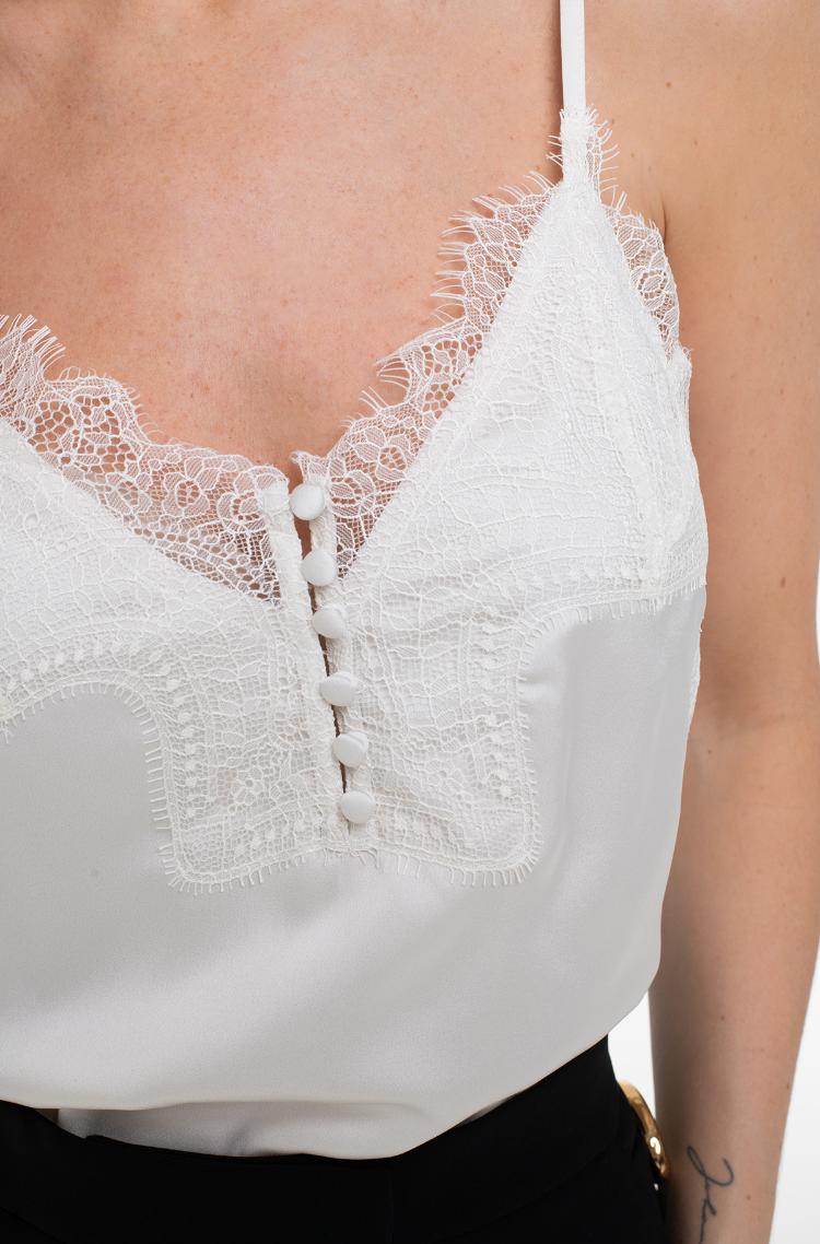 Top New Instinct Marciano, realizzato in tessuto con inserti in pizzo. Il poliestere garantisce una maggiore resistenza alle sgualciture.