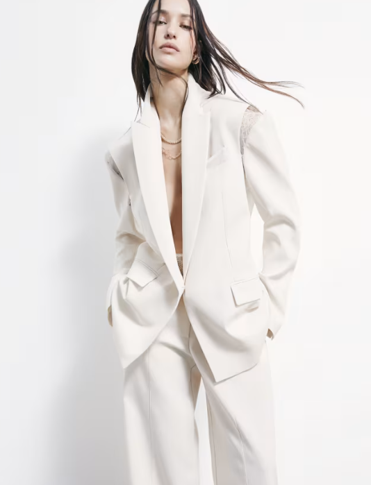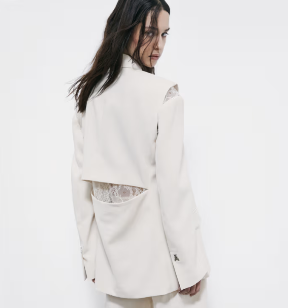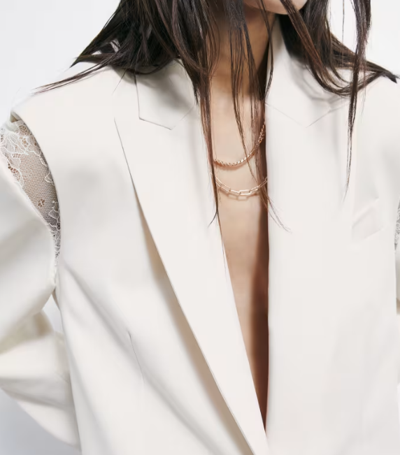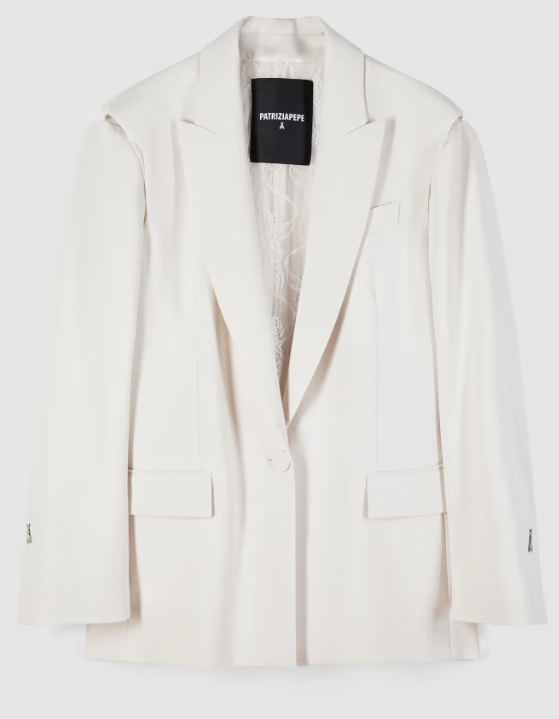 Blazer over in crêpe, caratterizzato da sofisticati inserti in pizzo che impreziosiscono il cut-out ampio sulla schiena e le aperture sulle spalle strutturate, richiudibili tramite gancetti. Un capo che si decostruisce per aprire nuovi orizzonti interpretativi. Sensuale, irriverente e audace: un manifesto del DNA Patrizia Pepe, pensato per la donna dinamica che vive la sua night out con libertà e consapevolezza.