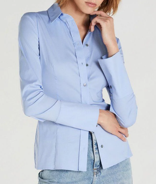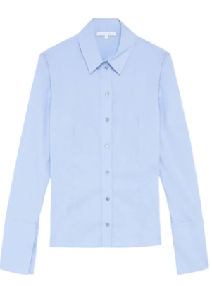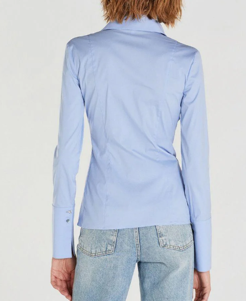 Camicia Patrizia Pepe in cotone popeline stretch. Chiusura con bottoni dello stesso colore. Polsini alti con spacchetti e dettaglio fly. Vestibilità slim.