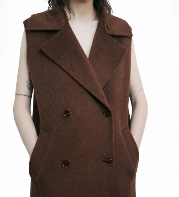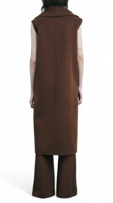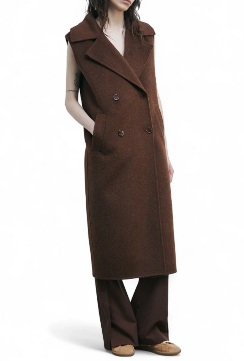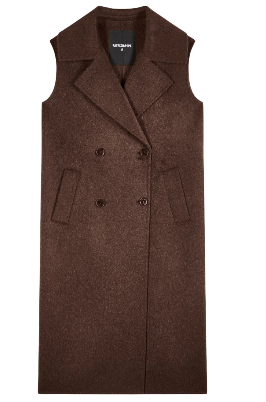 Patrizia Pepe Cappotto Smanicato in Lana e Alpaca Earth Brown