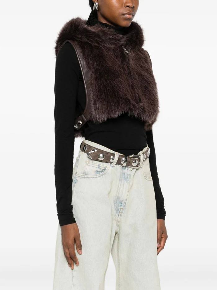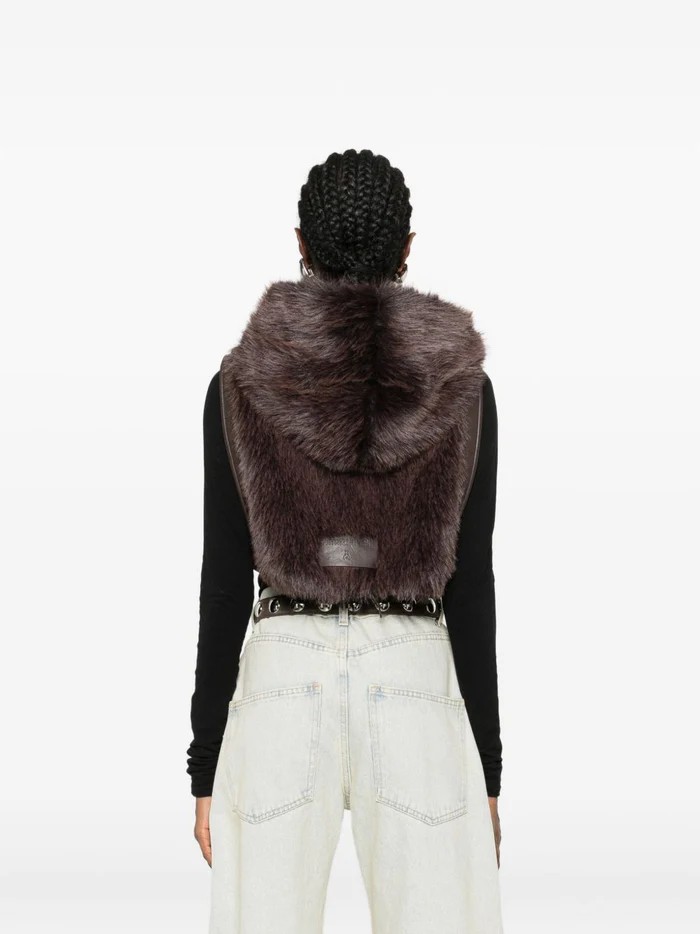 Avvolgente e irresistibilmente chic, questo gilet Patrizia Pepe gioca con volumi e texture per un effetto moderno e raffinato. Realizzato in morbida pelliccia sintetica, si distingue per il cappuccio ampio e soffice che incornicia il viso con un tocco di calore e femminilità. Il taglio corto valorizza la silhouette, rendendo il capo perfetto per sovrapposizioni creative e outfit dal carattere deciso.