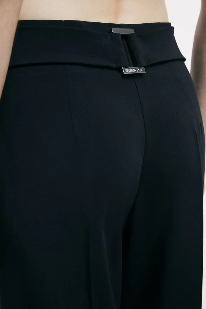 In crêpe stretch, questi pantaloni palazzo si distinguono per il dettaglio della cintura con fibbia in metallo e logo. Perfetti con il blazer coordinato per un look sofisticato e contemporaneo ? oppure con le sneakers SKIN per un twist disinvolto dal carattere irriverente.