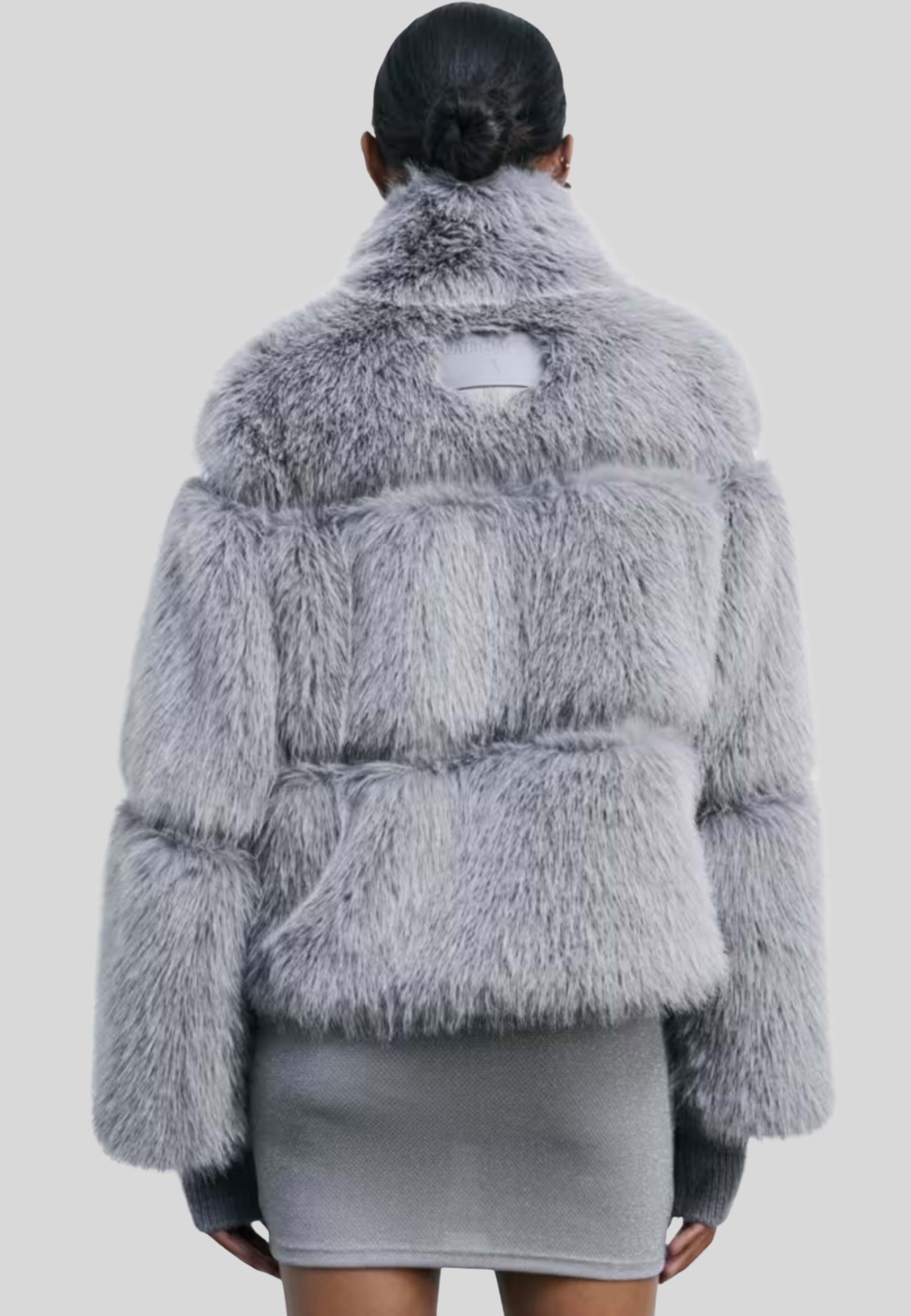 PATRIZIA PEPE Pelliccia grigia da donna. I polsi in maglia assicurano calore, mentre gli inserti in tessuto spalmato definiscono le maniche e il profilo della chiusura a bottoni. Morbido e voluminoso, aggiunge carattere a look casual glam, perfetto con denim wide leg e stivali con tacco. La modella indossa una taglia 40 ed è alta 170cm. Si consiglia un lavaggio a secco. Stagione autunno inverno.