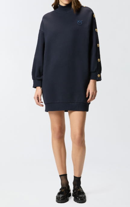 Maxi maglia a maniche lunghe, da indossare anche come abito corto, realizzata in felpa con collo alto modello Muesli da donna di Pinko.