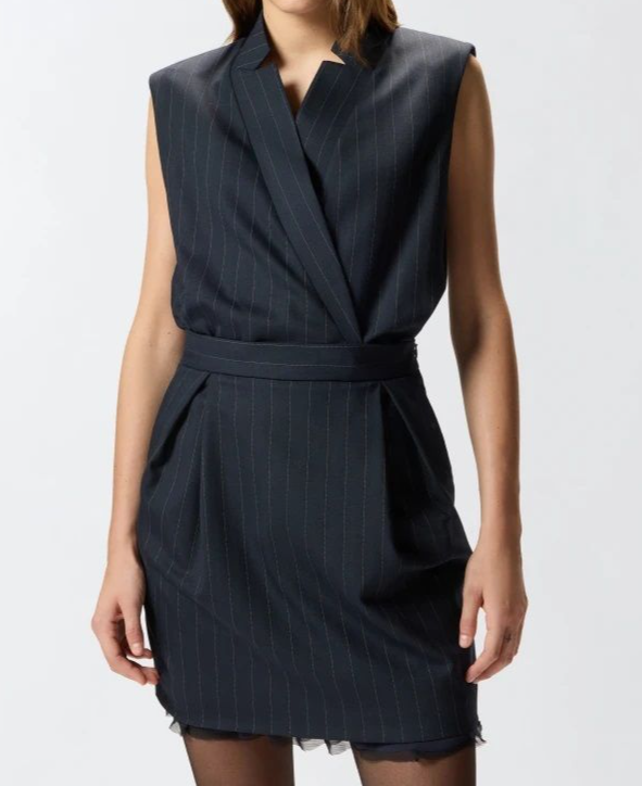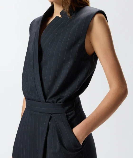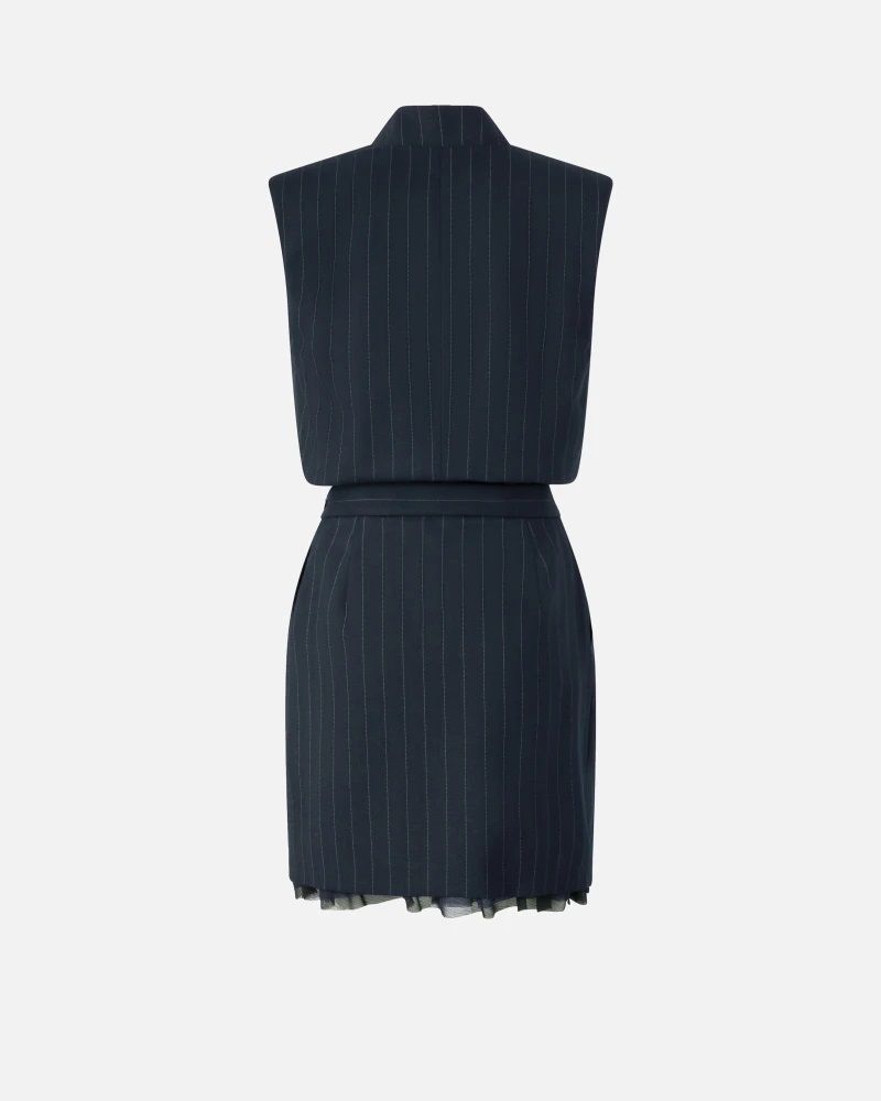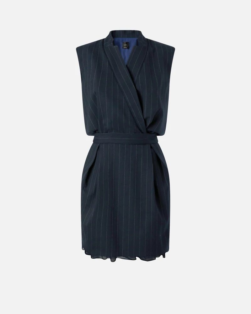 Abito corto senza maniche realizzato in un resistente tessuto di lana poly che previene la sgualcitura 54%pl 44%wo 2%ea