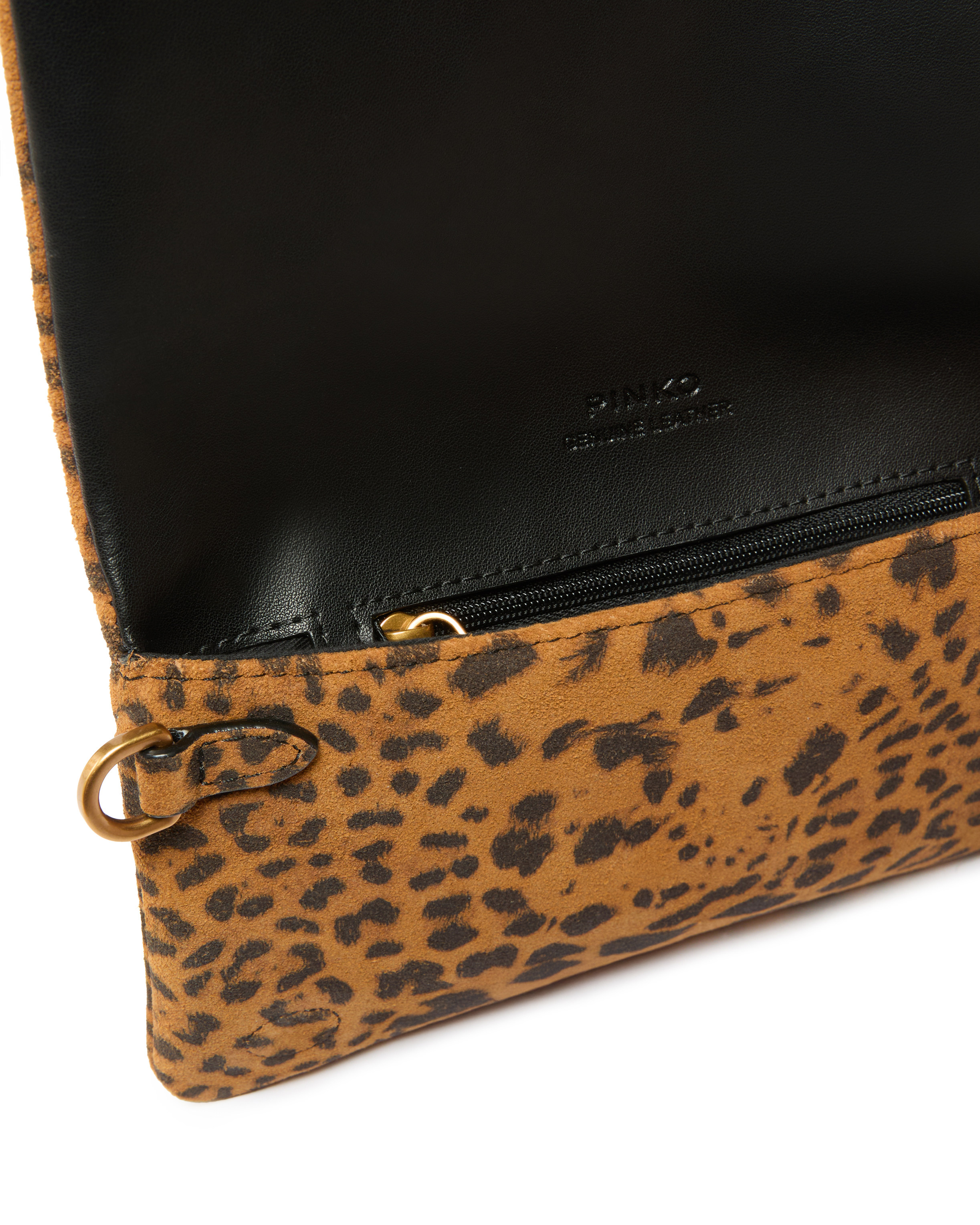 La borsa a tracolla con stampa animalier di Pinko si distingue per il suo design audace e una sensazione di lusso al tatto. Realizzato in pregiata pelle, questo accessorio offre una silhouette elegante e orizzontale per look versatili. L'iconica fibbia con i caratteristici Love Birds aggiunge un accento glamour sul davanti, completando perfettamente l'aspetto esclusivo.