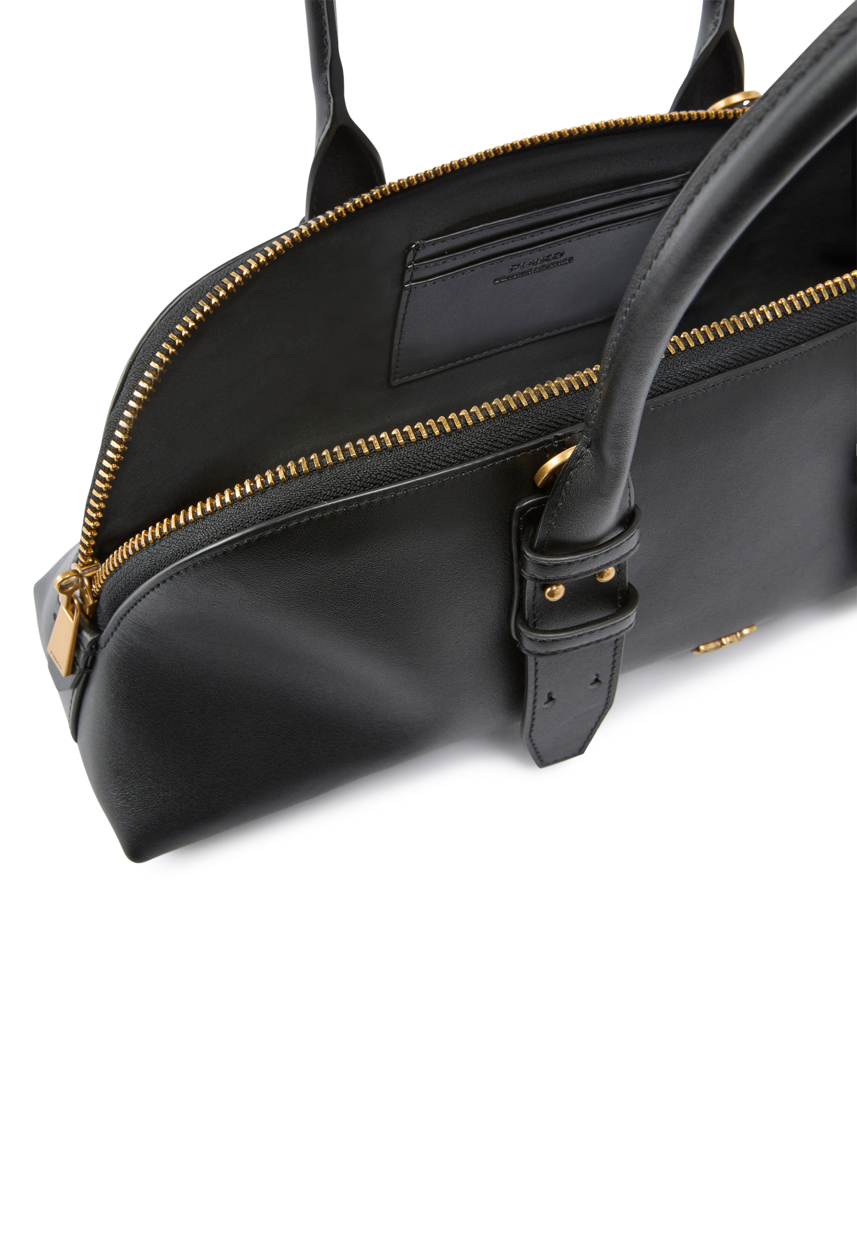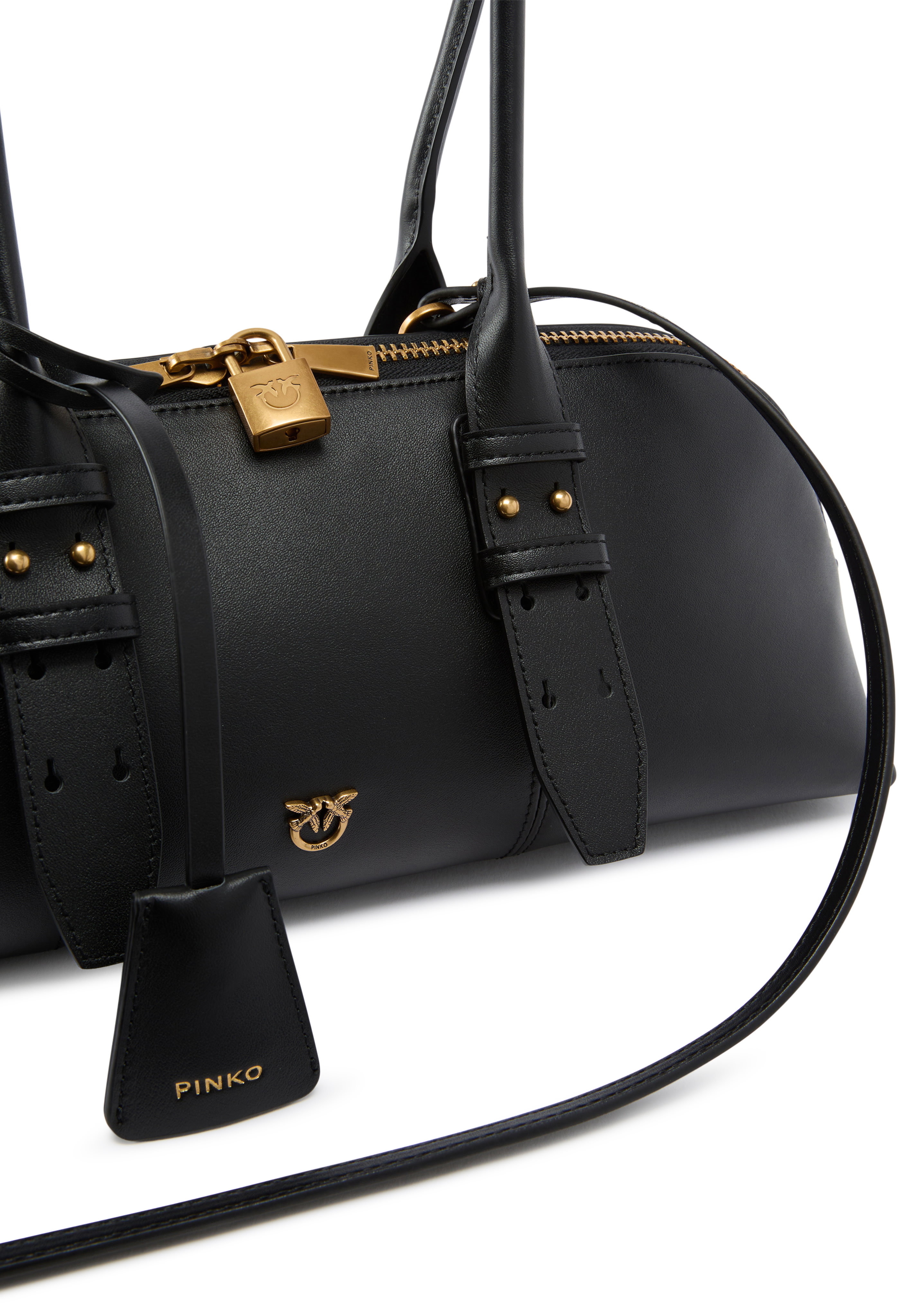 La chiusura superiore con zip a doppio cursore è personalizzata con un dettaglio inedito: un lucchetto decorato dall'iconico logo Love Birds che può essere aperto e chiuso grazie alla chiave contenuta nel charm in pelle che completa la borsa.