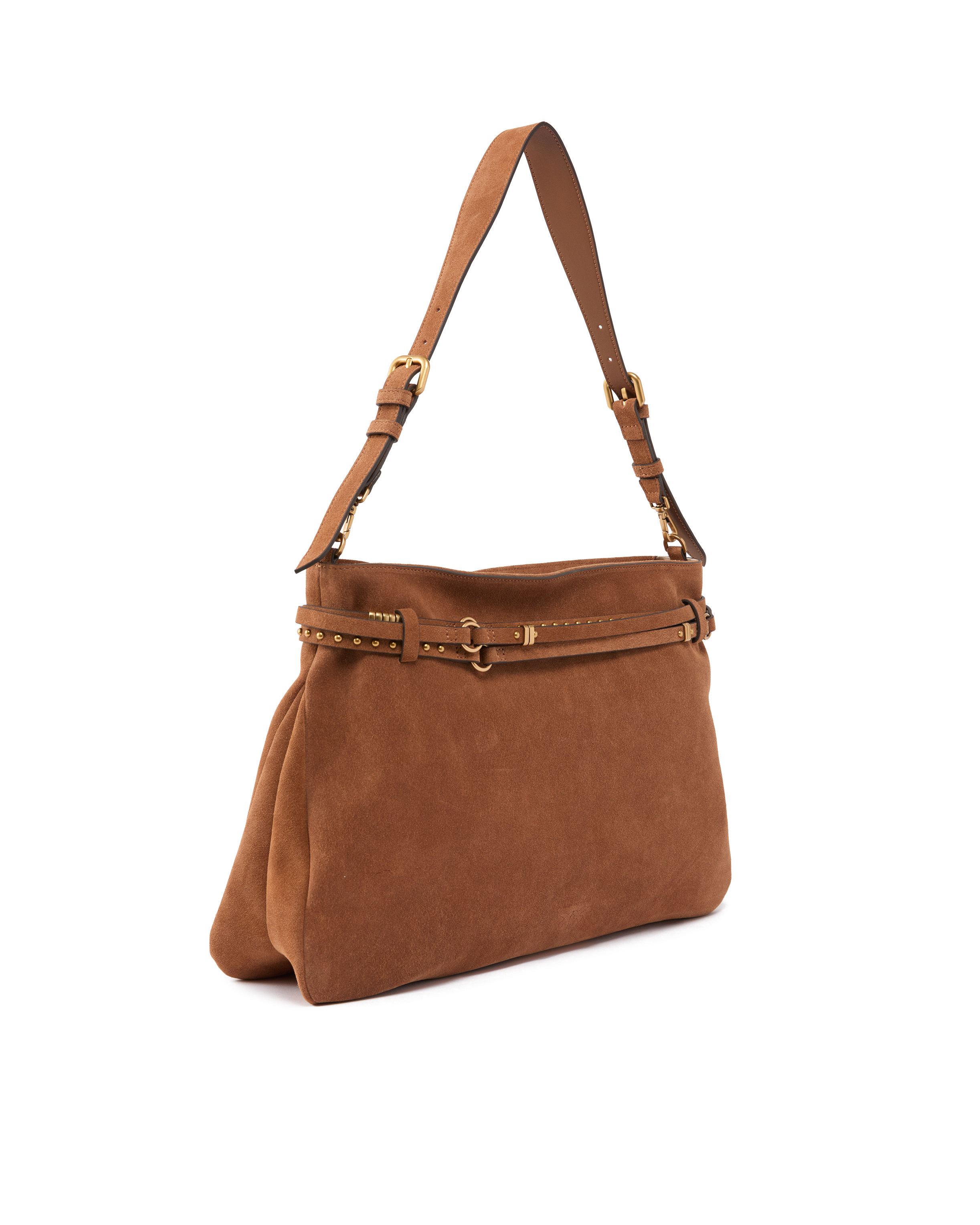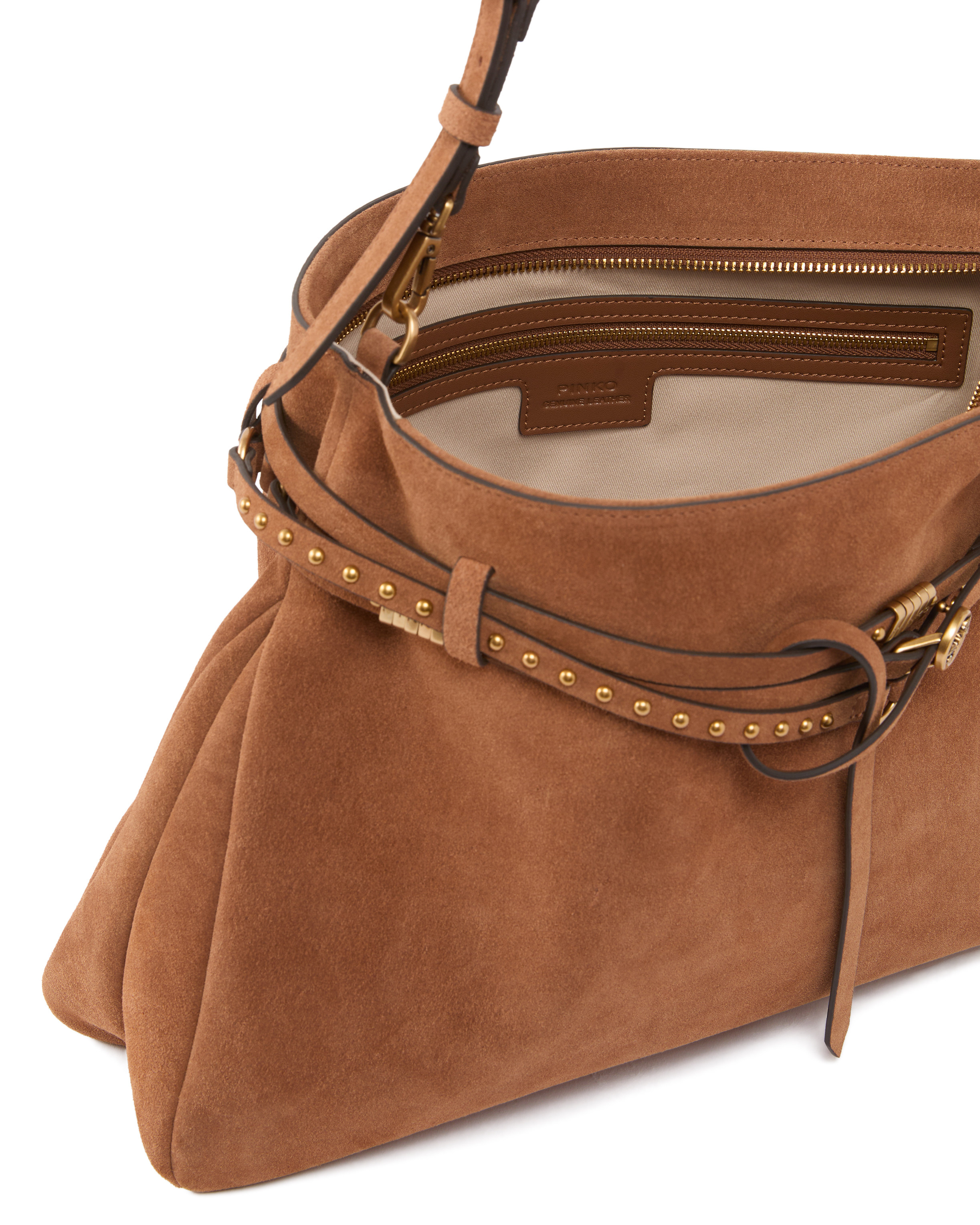 Borsa Pinko in pelle scamosciata marrone+oro con tracolla removibile.