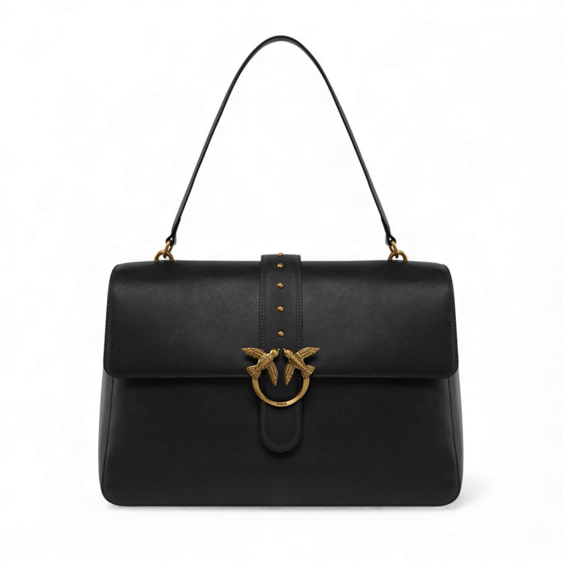 * Borsa a spalla in pelle liscia con chiusura a patta