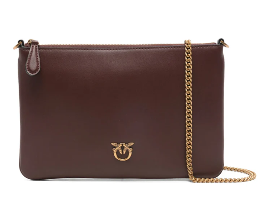 Borsa a tracolla flat in morbida pelle mano seta. Personalizzazione con placchetta Love Birds Diamond Cut. Interno foderato in polycotton e tracolla rimovibile a catena sottile. Chiusura con zip.