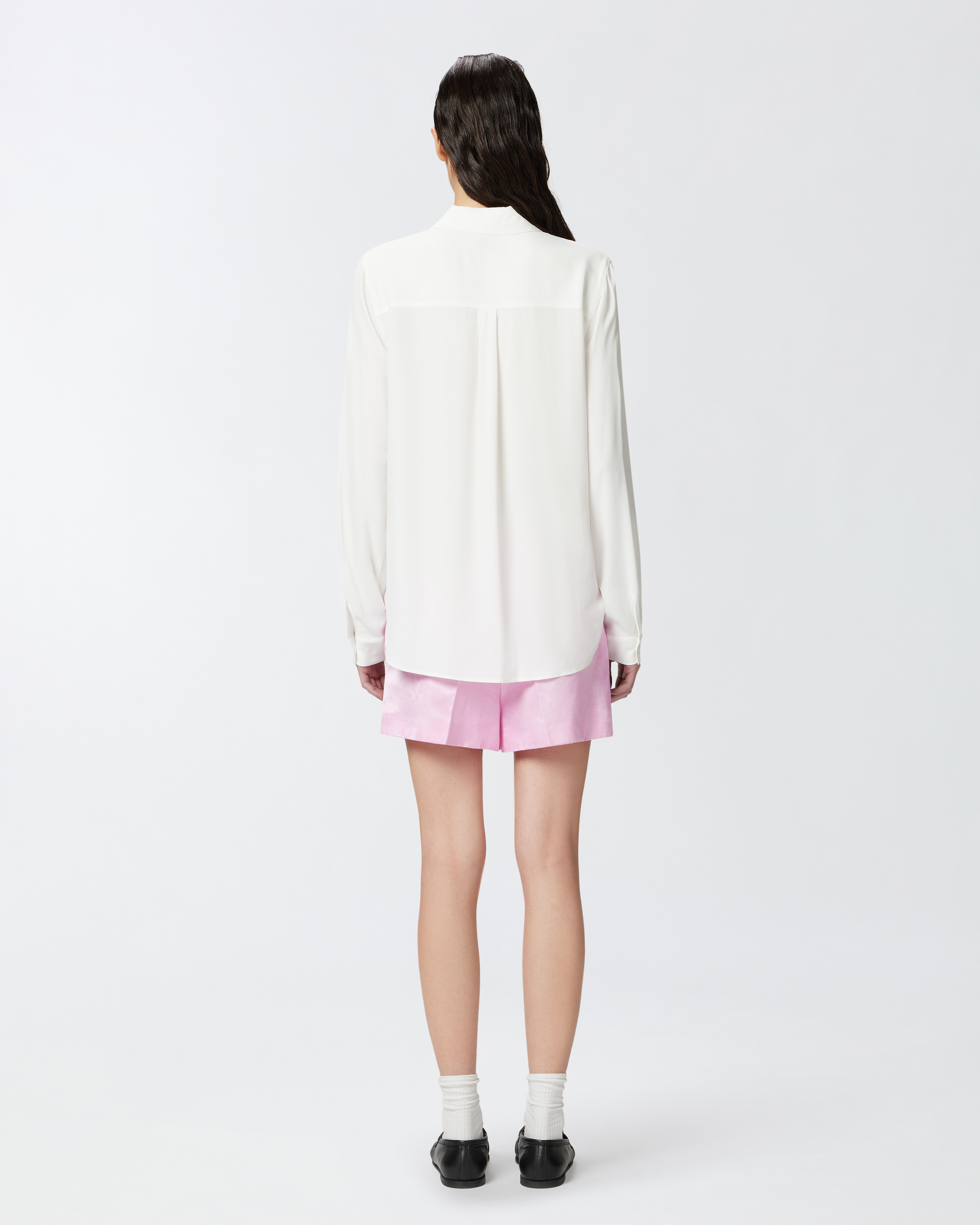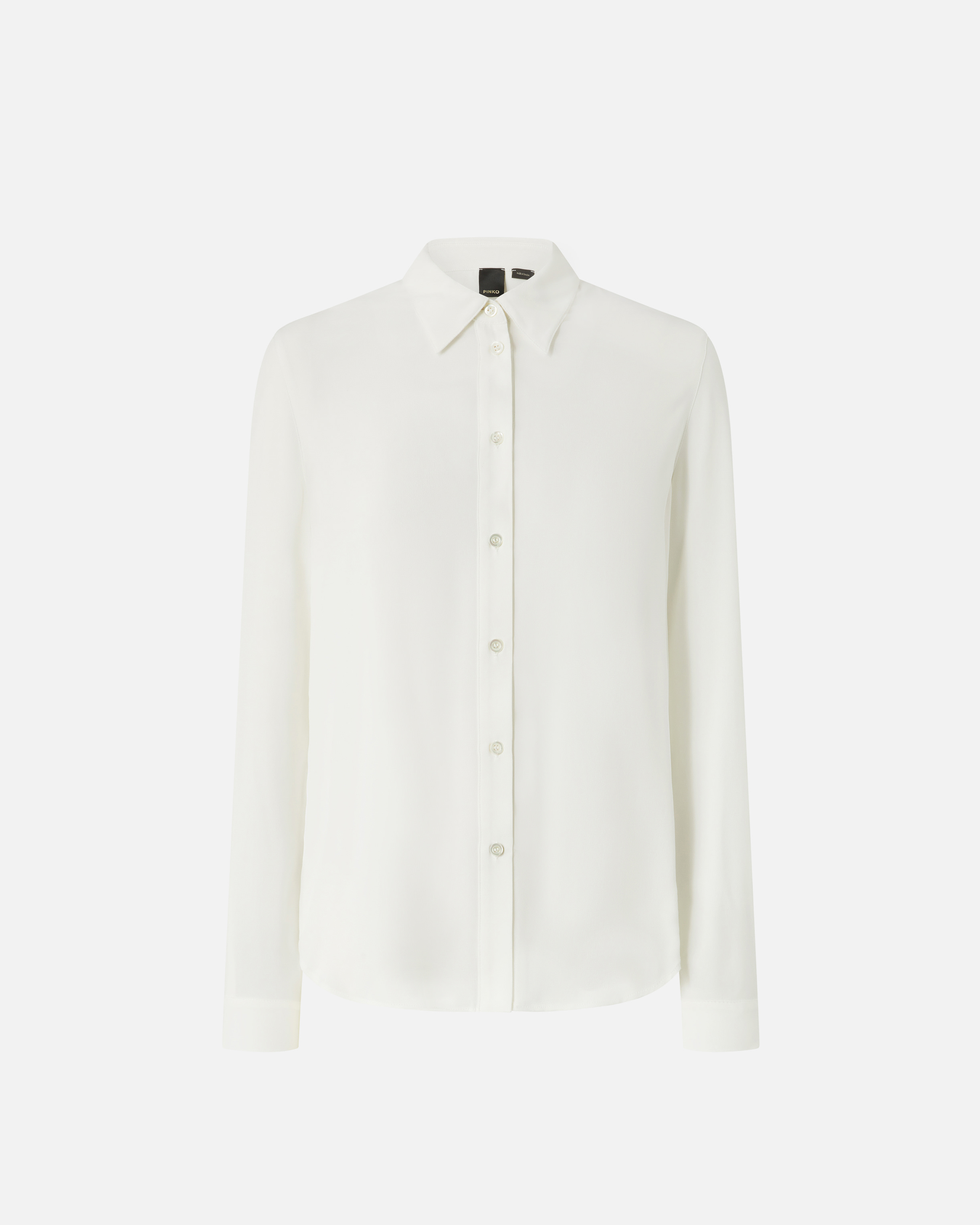 Camicia classica in leggero tessuto crêpe de Chine di misto seta con colletto piccolo, maniche lunghe con polsino al fondo e chiusura con bottoni davanti. Il tessuto principale è realizzato con il 69% di viscosa da foreste gestite responsabilmente.