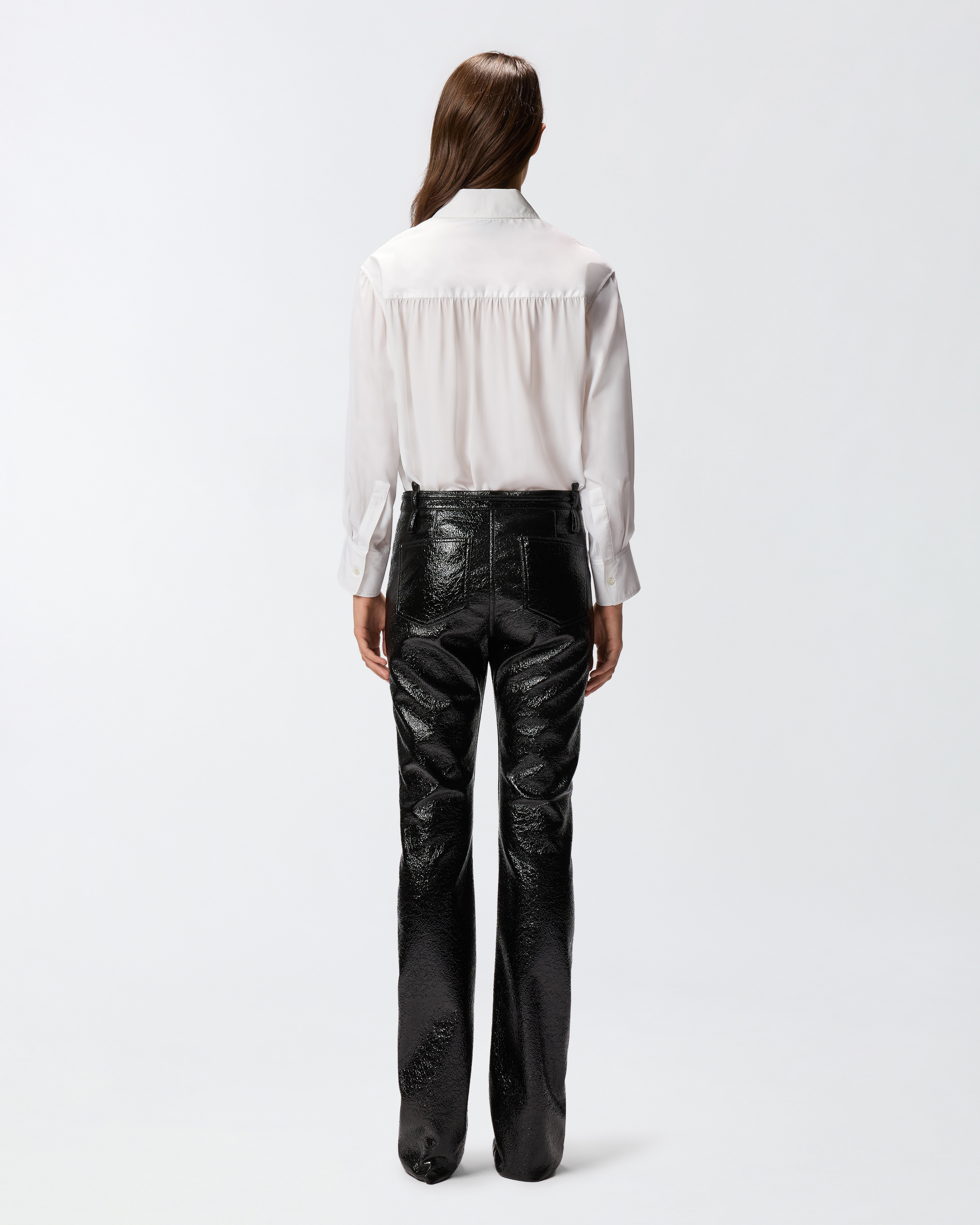 Camicia classica caratterizzata dall'abbinamento di popeline di cotone più compatto, presente sul corpo principale e sulle maniche, e tessuto crêpe de Chine più fluido sull'inserto posteriore leggermente arricciato. Colletto a punta, maniche lunghe con polsino e chiusura con bottoni sul davanti. Abbina questa camicia ai jeans per dare al tuo look quotidiano un tocco femminile e originale che non passerà inosservato.