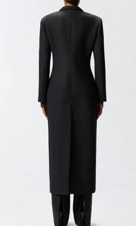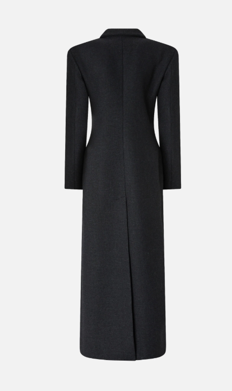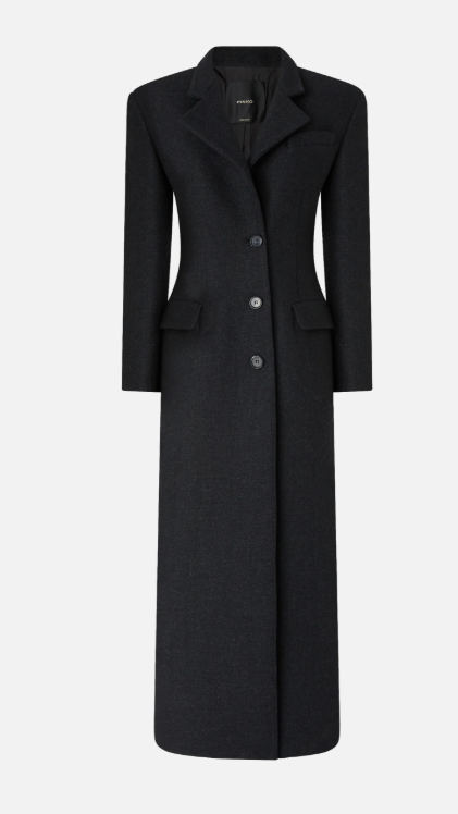 Cappotto lungo monopetto dalla linea sfiancata con collo a revers, spalle strutturate e tasche con patta, realizzato in morbido panno di misto lana. Il lungo taglio asimmetrico sul retro e l'abbottonatura decentrata sul davanti contribuiscono a rivisitare un design classico, dando come risultato un modello essenziale ma di classe in pieno stile PINKO, destinato a diventare un nuovo must della stagione fredda.