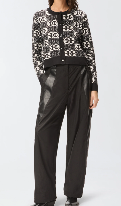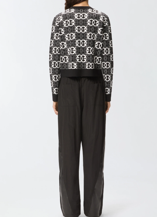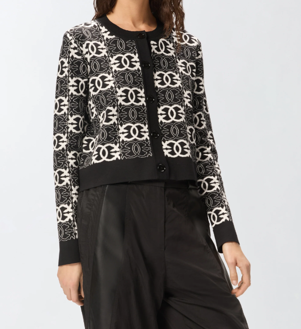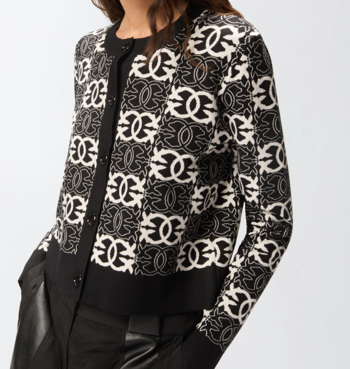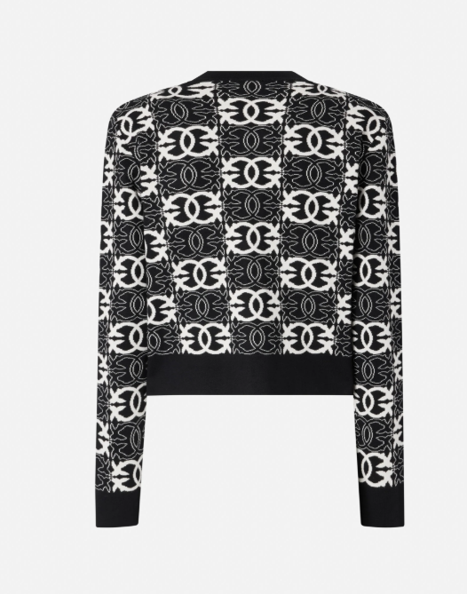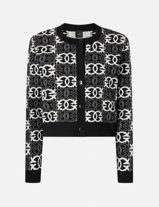 Cardigan girocollo in maglia a maniche lunghe con bottoni tono su tono e polsini, abbottonatura e scollo a contrasto. Il pattern logo Love Birds all over con lavorazione jacquard è un elemento d'impatto che arricchisce il modello. Abbina questo capo raffinato e versatile alla gonna coordinata della stessa collezione, per un look che non lascia nulla al caso. Il capo è stato sottoposto a prove di finissaggio per ridurre al minimo la possibile formazione di pilling, garantendo una maggiore morbidezza e durabilità del tessuto.