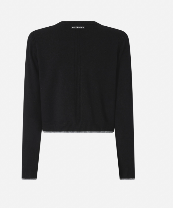 Cardigan realizzato in soffice misto di lana merino e cashmere con scollo a V, orlo e polsini lavorati a coste. Il filato a contrasto mette in risalto i polsini e l'orlo, mentre la caratteristica etichetta con logo lettering PINKO completa il design. Il capo è stato sottoposto a prove di finissaggio per ridurre al minimo la possibile formazione di pilling, garantendo una maggiore morbidezza e durabilità del tessuto. Essenziale e contemporaneo, questo design diventerà un vero e proprio passe-partout.