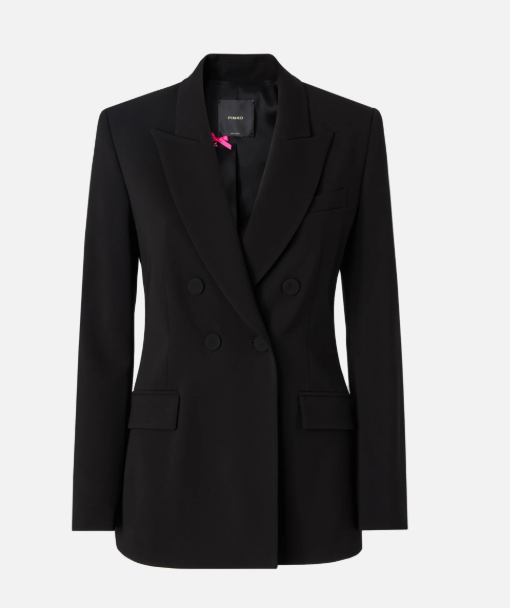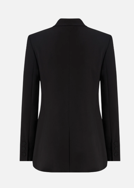 Giacca realizzata in viscosa stretch, tessuto iconico che richiama il classico cady, caratterizzato da una mano morbida e avvolgente che scivola con naturalezza sul corpo, definendo la silhouette con eleganza e offrendo una vestibilità impeccabile. Il capo, proposto con una linea sagomata un po' più aderente in vita e foderato per un indosso confortevole, presenta i dettagli classici dei blazer, come il collo con revers a lancia, le tasche laterali con patta e il taschino frontale lato cuore, ed è completato da una chiusura doppiopetto con bottoni ricoperti.